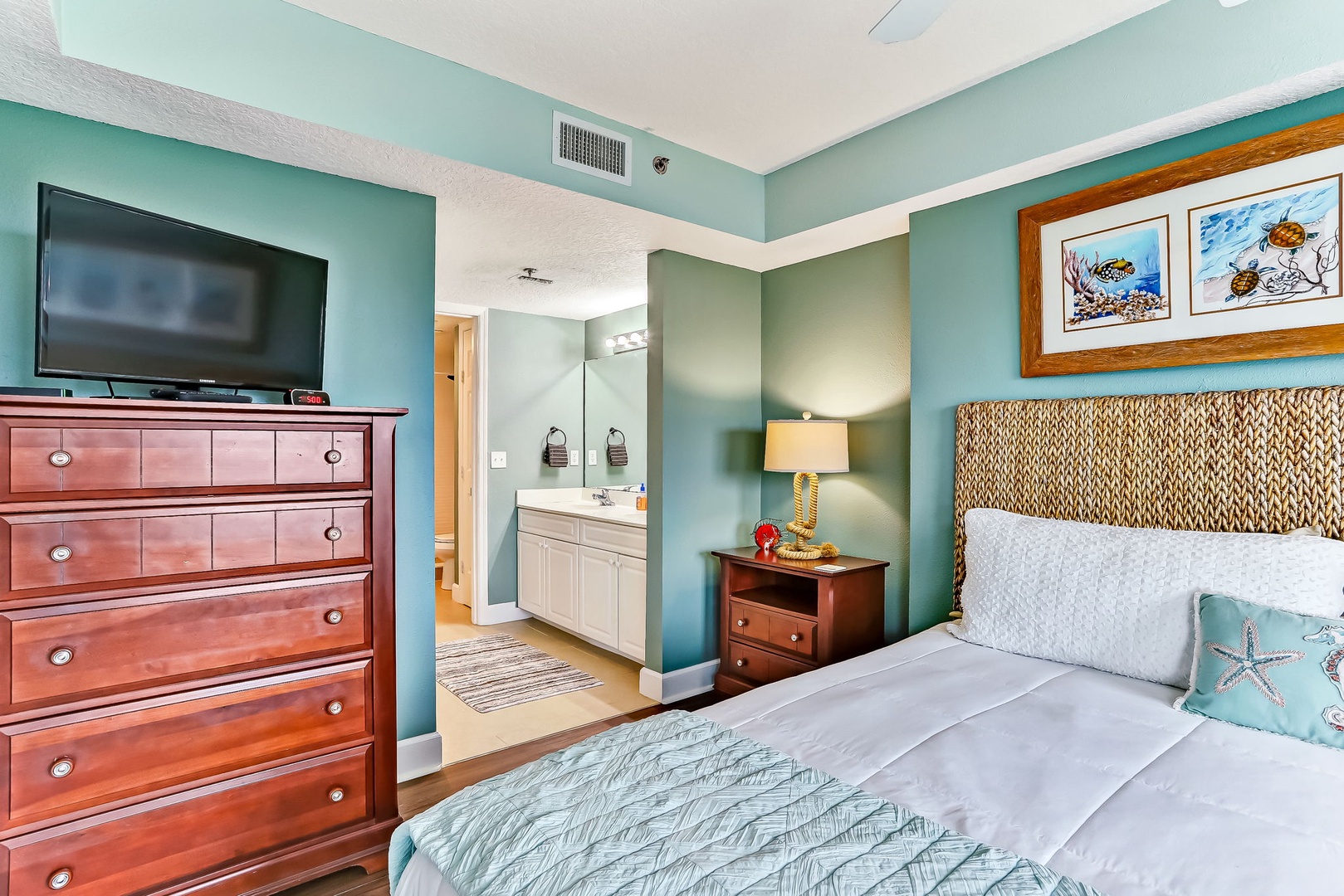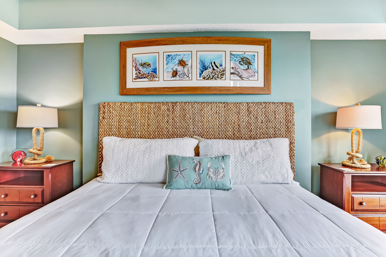 The unit was very clean and uncluttered. The kitchen was well stocked with pans and dishes. The bed was very comfortable. The view was amazing. Also, easy access to the beach.