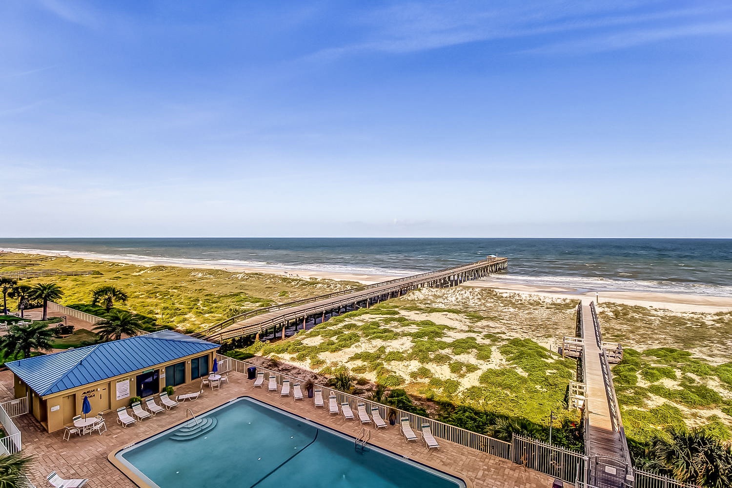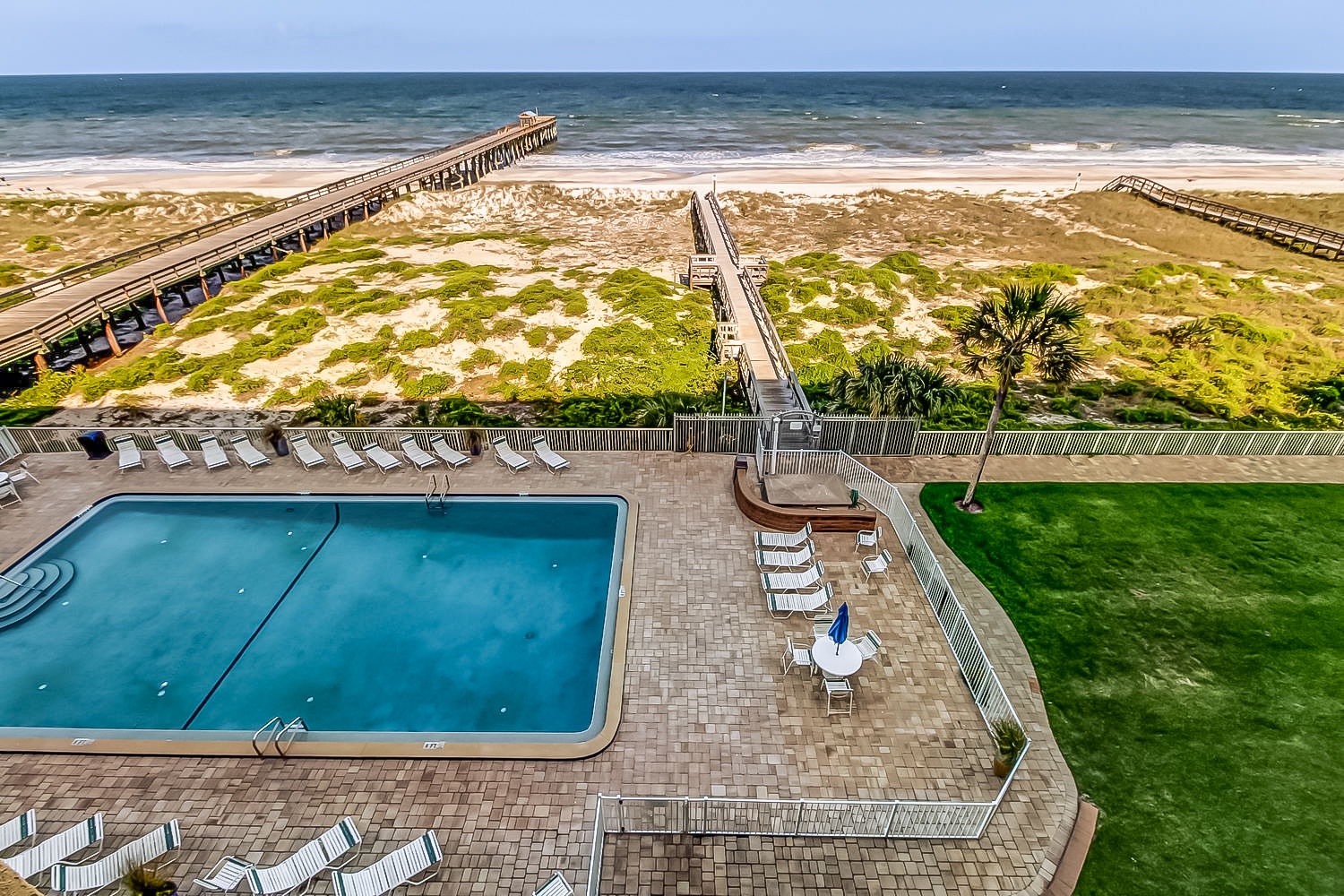 The 800 ft fishing pier is available to our guests and NO FISHING LICENSE is required when fishing from this private pier. The swimming pool, which is on the ocean side of the building, has been completely redone and is now glistening in the sun ready for your arrival! Two tennis courts are also available on a first-come basis.