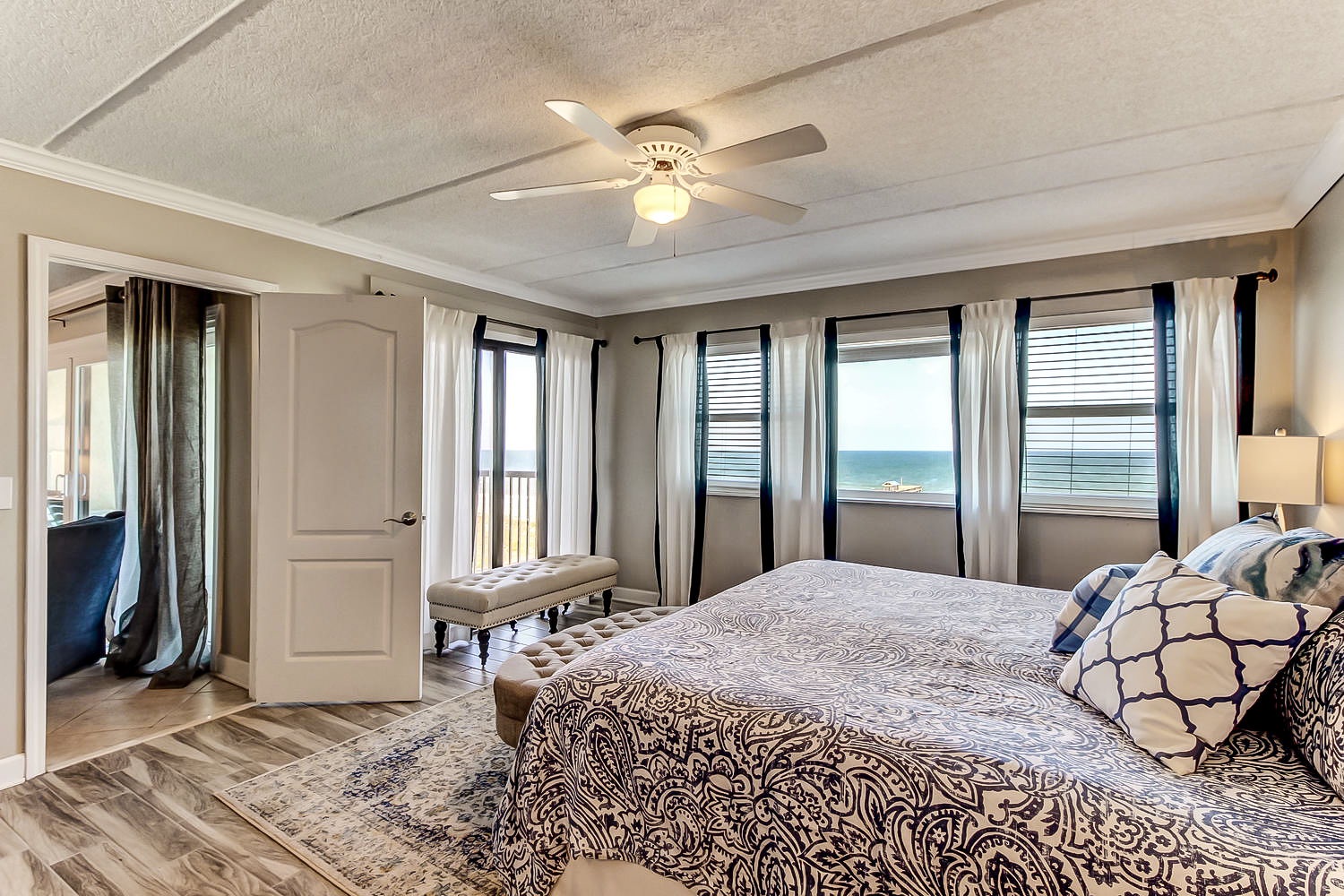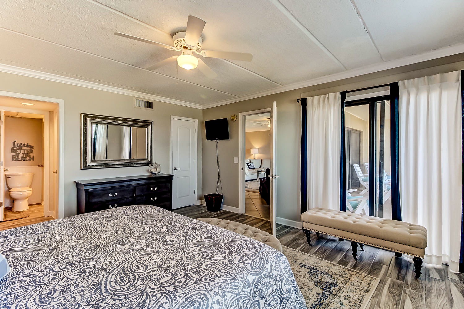 The master bedroom has a King bed and a TV, but most of all, it has A Direct Ocean View.