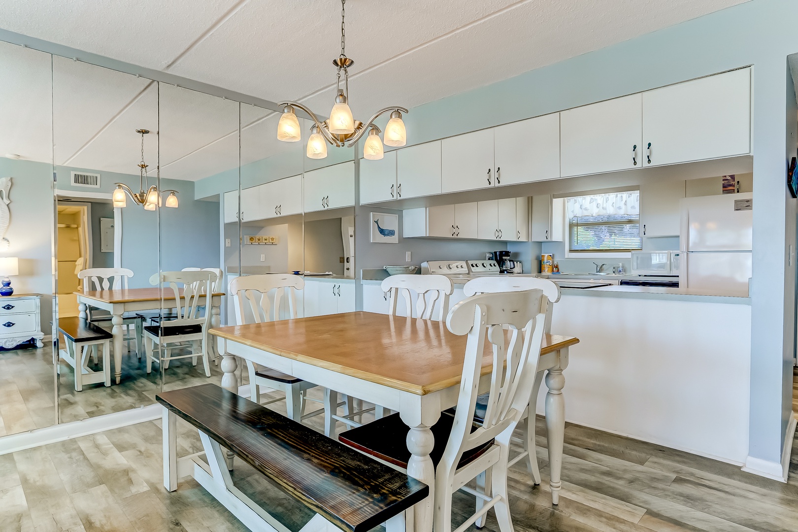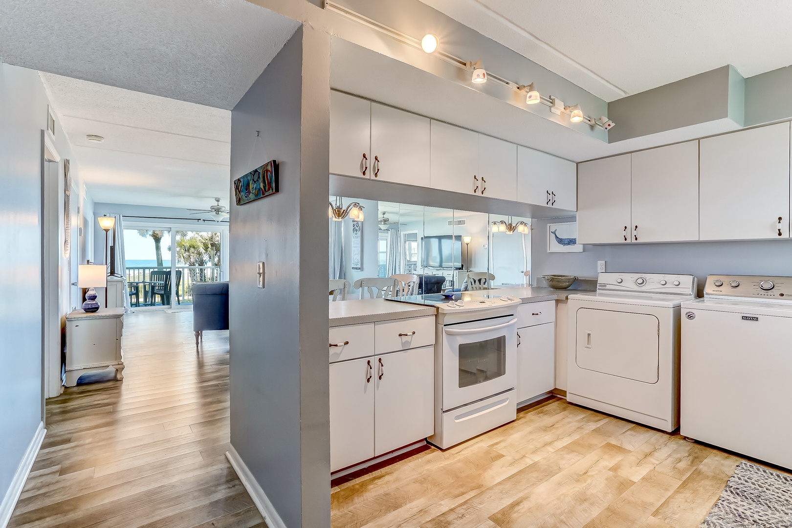 This unit has many amenities that will make you feel like you're at home, so you won't have to sacrifice any creature comforts. This unit comes equipped with a full kitchen, a separate dining area, complimentary cable TV, a washer/dryer, and Wifi throughout the condo.
