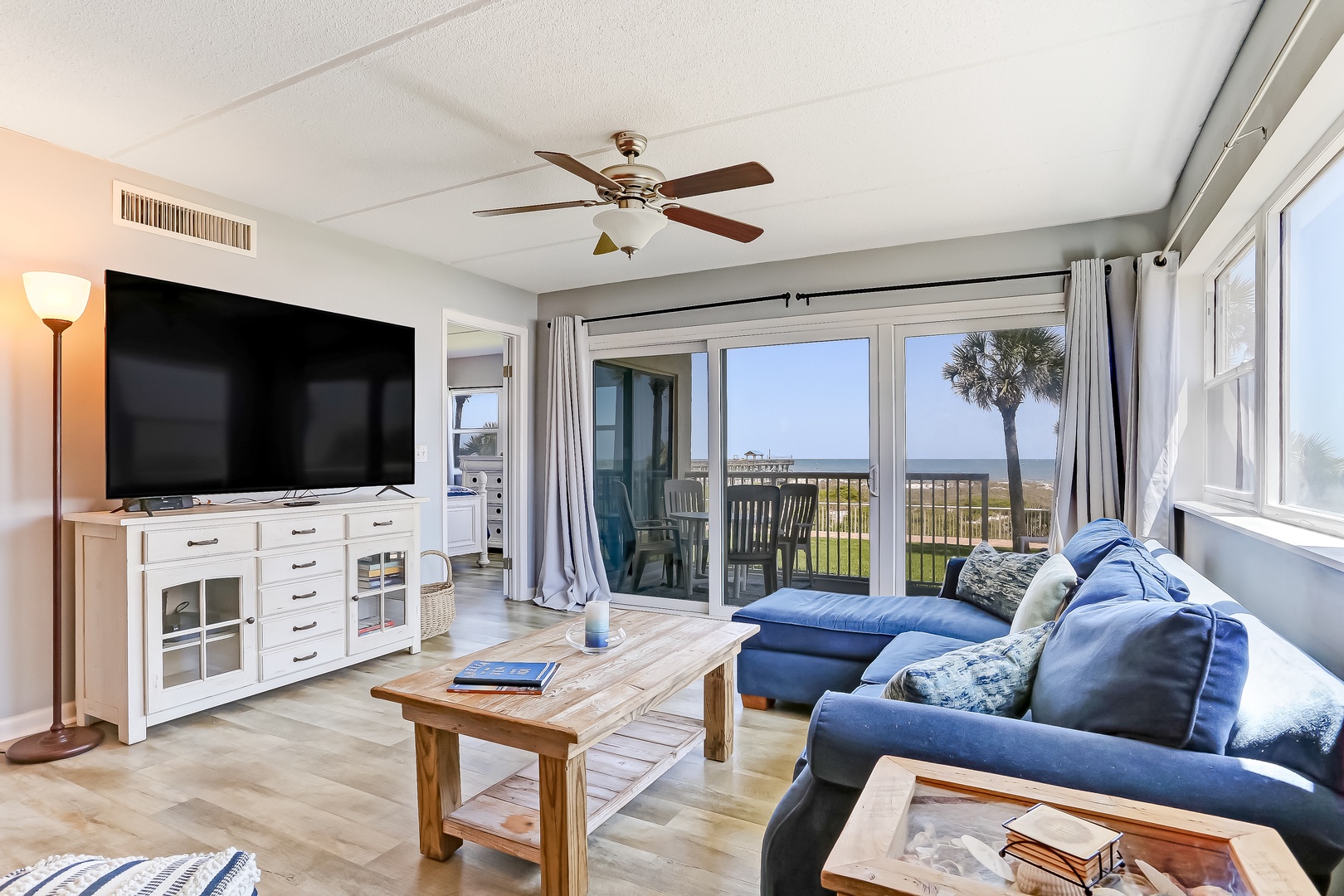 Enjoy the sand and surf your way. There is convenient access to the beach and an 800 ft fishing pier exclusive to our guests. The best part, no finishing license is required when fishing from this private pier. Want to enjoy just lounging about and getting some sun? There's a pool located on the ocean side of the complex. Additional amenities include a community grill with a picnic table and lounge chairs available on a first-come basis. For those interested in exercise: there are two very well-maintained tennis courts also available on a first-come basis and a highly rated, 27-hole municipal Fernandina Beach Golf course a short two-minute drive from the condo.