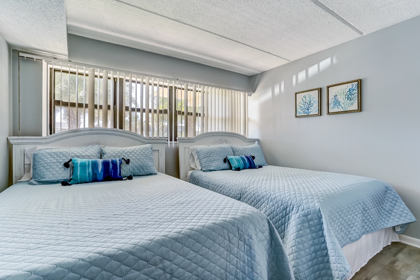 Amelia by the Sea Condo 101 is in a private gated complex with open parking for a maximum of two vehicles per unit. This beachside ultra-convenient ground-floor corner unit has easy access to the beach boardwalk. Because this is an end unit, it has extra windows that allow for more natural light. This unit has a King Bed in the Master Bedroom with an en-suite bathroom, a guest room with two queen beds, and a second bathroom close by adjacent to the hall. It sleeps up to six adults. Sorry, No Pets are allowed.
