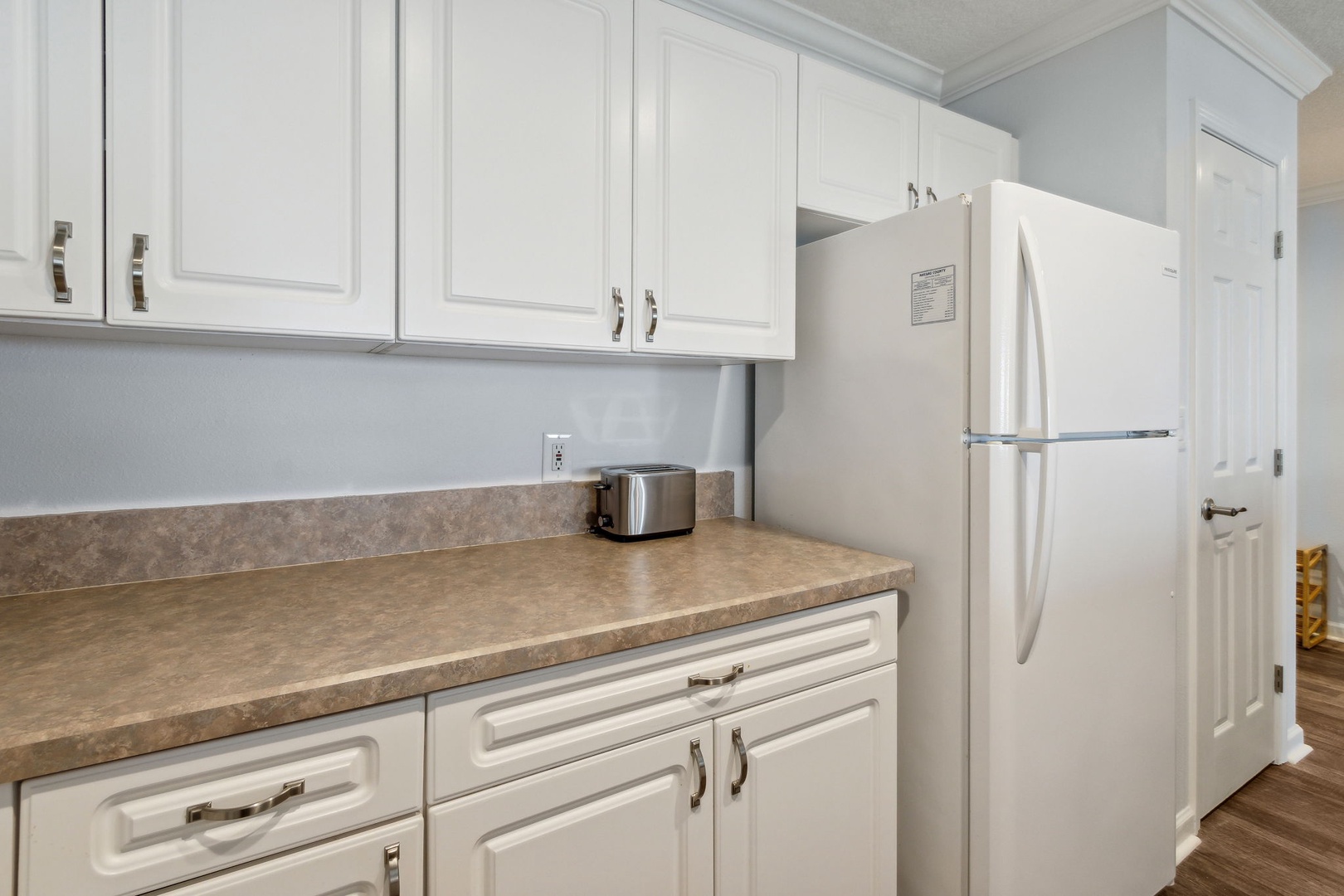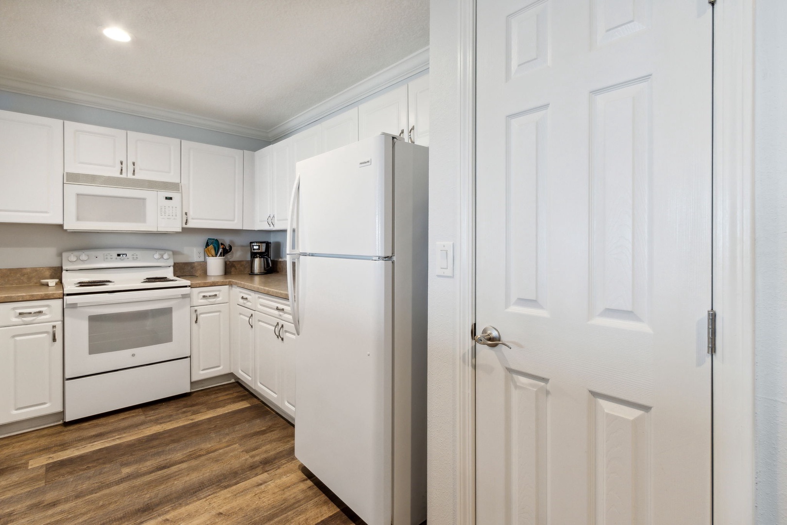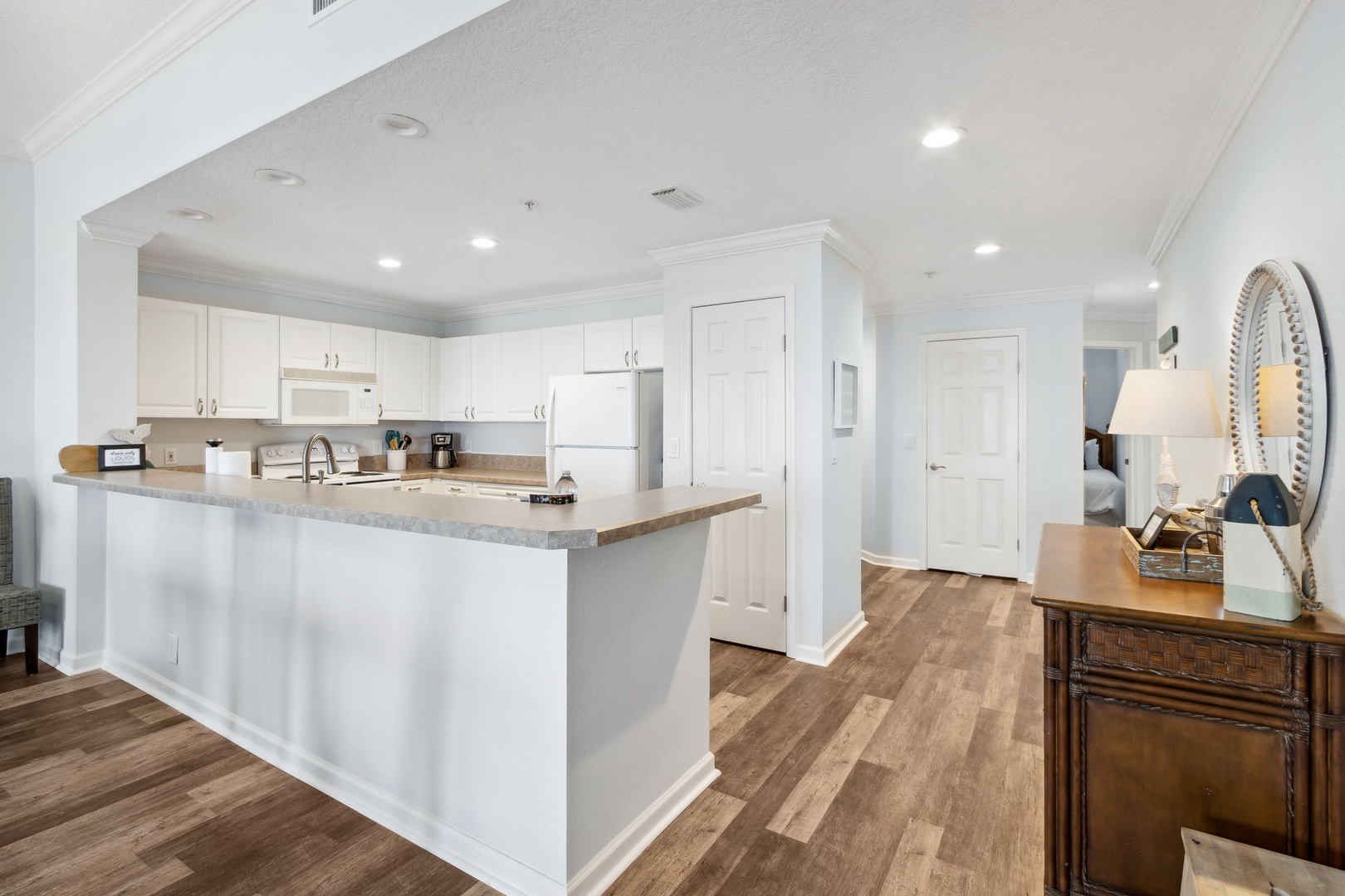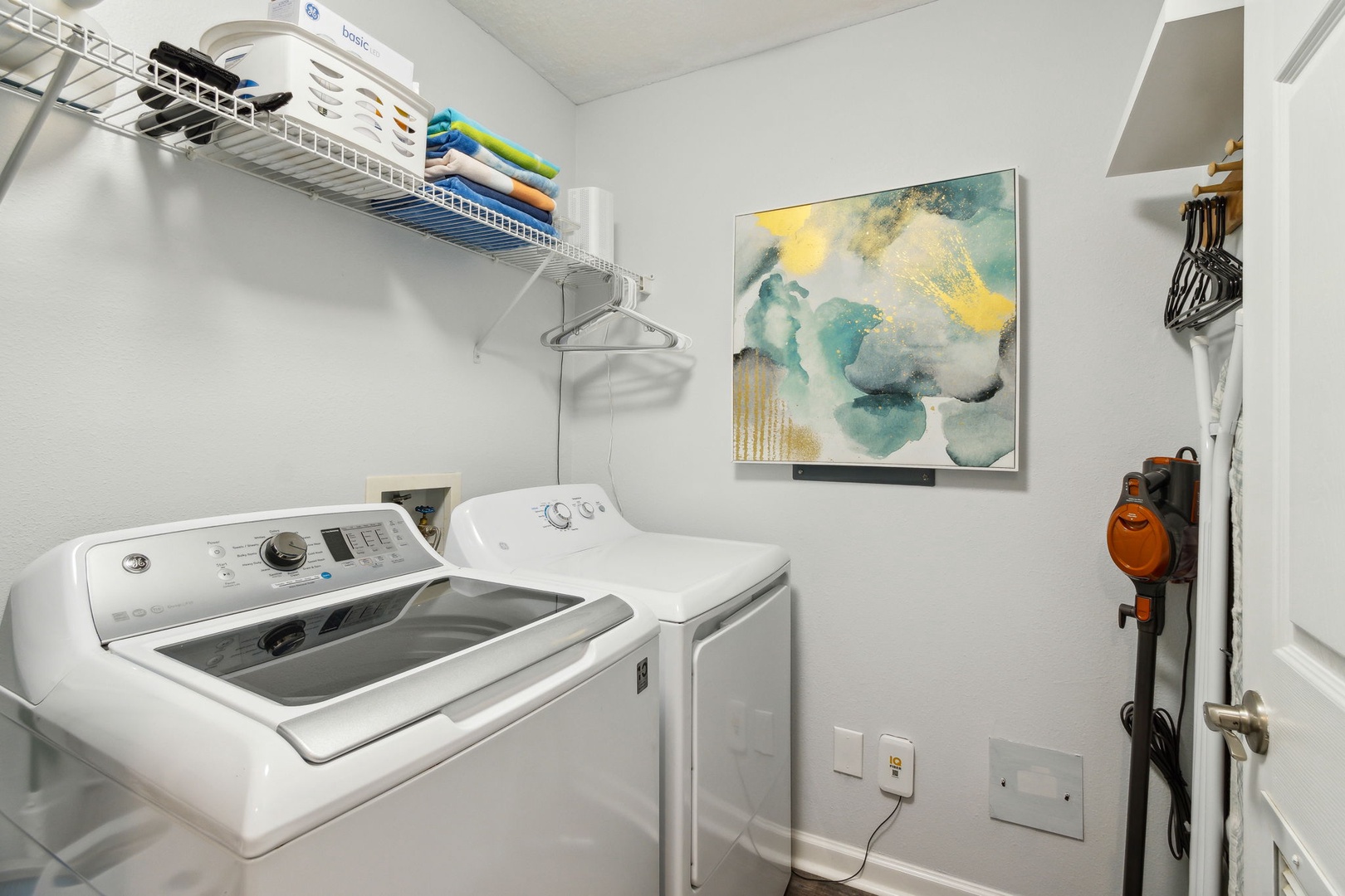 At the entryway of the condo is a laundry room with a washer and a dryer. Also, the condo has brand-new flooring and boasts other updates throughout.