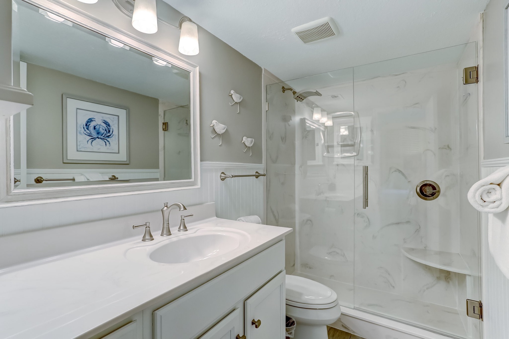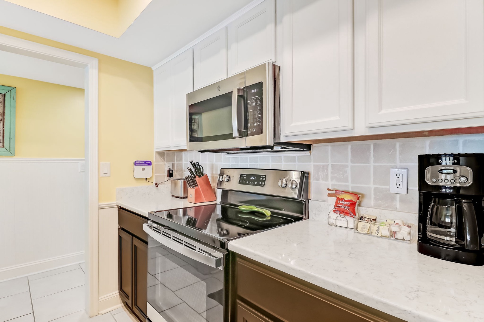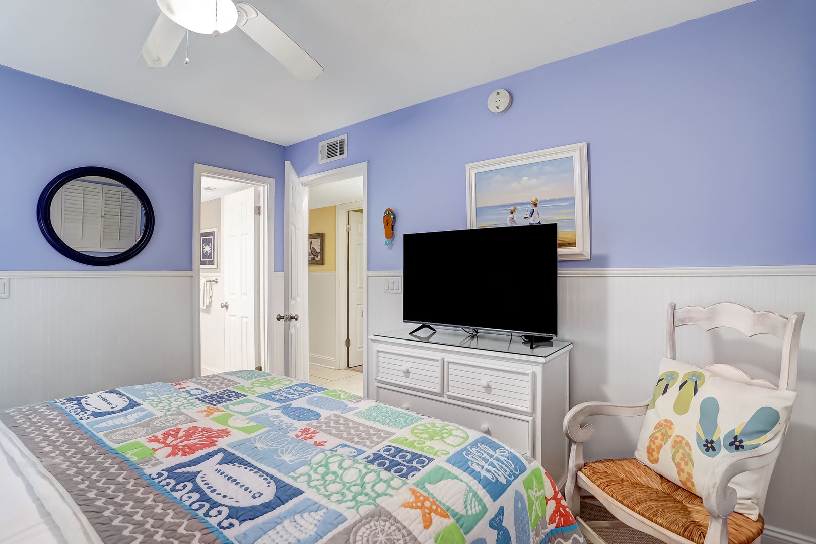 The kitchen has been beautifully appointed and features quartz countertops, and stainless steel appliances. It’s fully equipped for all your cooking and dining needs with enough seating for 4 people. The master bedroom has a King bed featuring a smart TV with a private ensuite bath. The second bedroom has a queen bed, Flat Screen TV, and also a bathroom that can be entered through your bedroom or hallway.