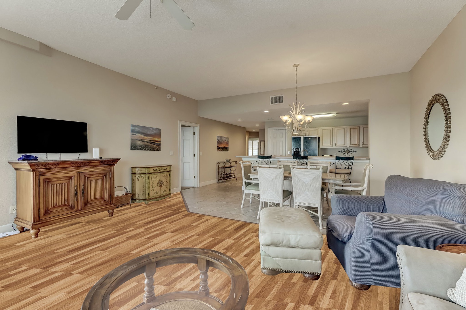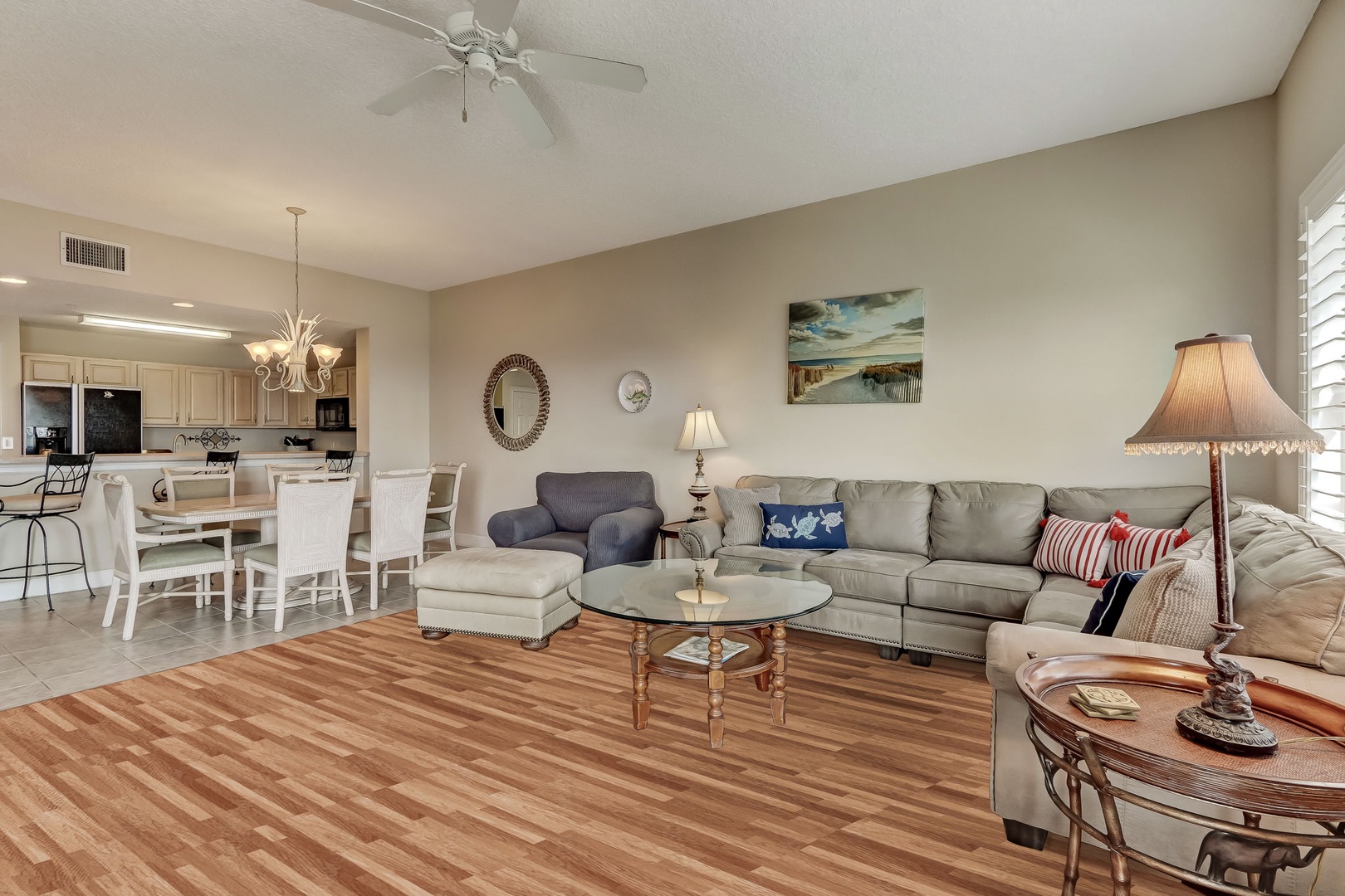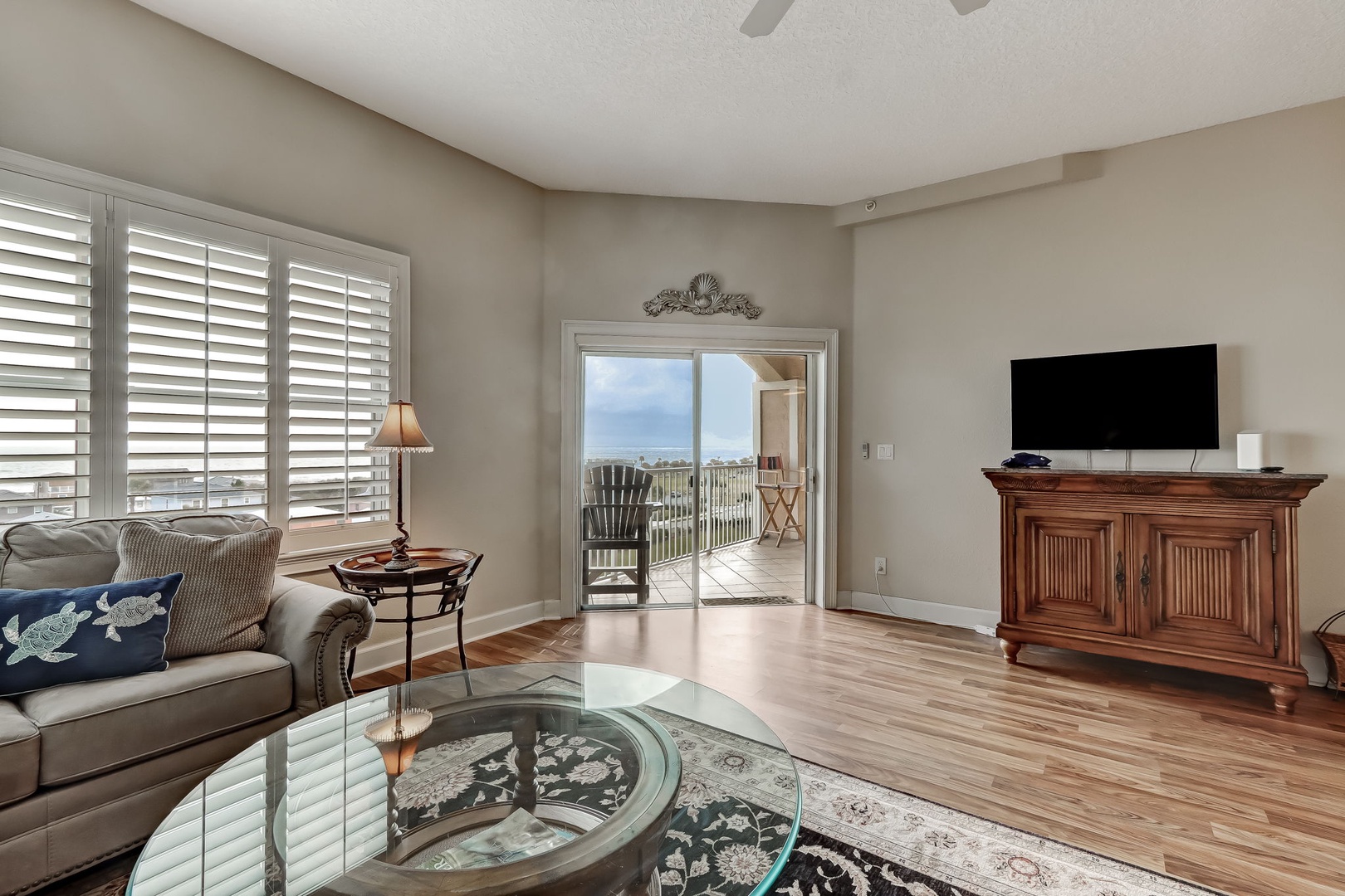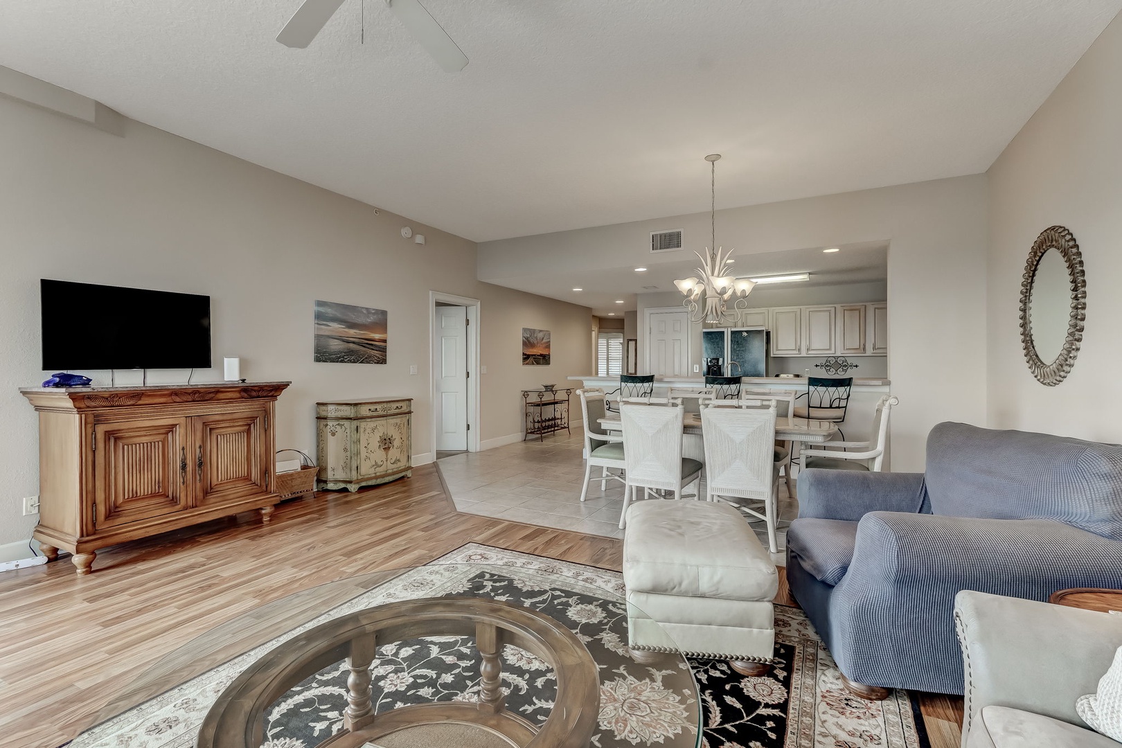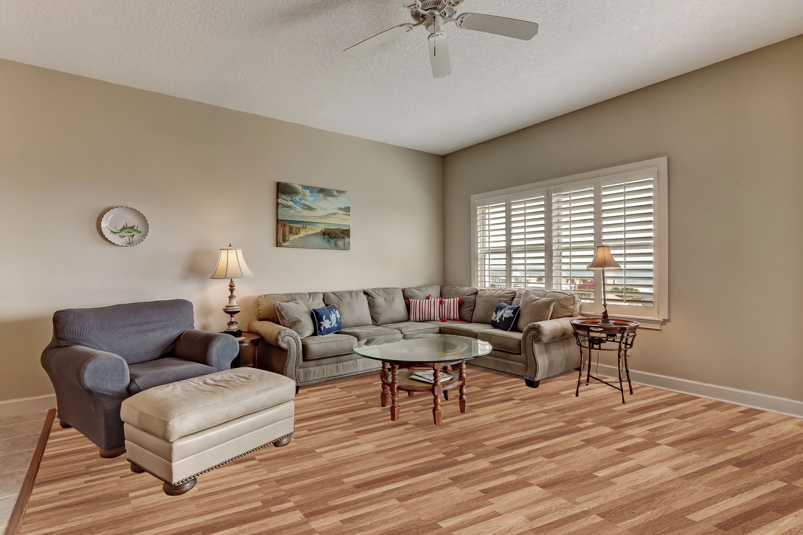 409 Ocean Park has a stunning top-floor ocean view from the open-concept living room, dining room & kitchen. The private balcony has 4 high-top chairs, so you can sit and enjoy the amazing views & the sound of the waves. This 3-bedroom 2 bath condo has everything you need for the perfect vacation!