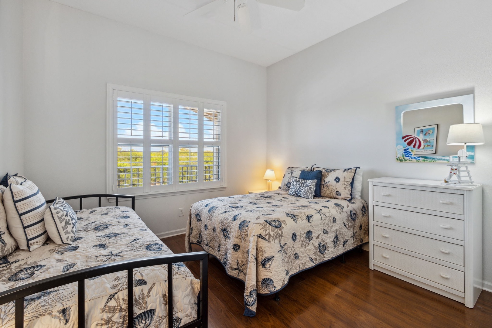 The best ocean views in Ocean Park are located in this condo. This 2-bedroom 2-bath condo is centrally located on the 4th floor in Ocean Park. Enjoy incredible sunsets from your balcony. A large open floor plan allows you to enjoy the ocean views from the kitchen and living room. An ocean view can be seen from the master bedroom, which features a queen bed and an ensuite bathroom. In the guest bedroom, there is a double bed plus a trundle bed. A hall bath is located outside the guest bedroom. Will sleep up to 6 with a King sleeper sofa located in the living room.
