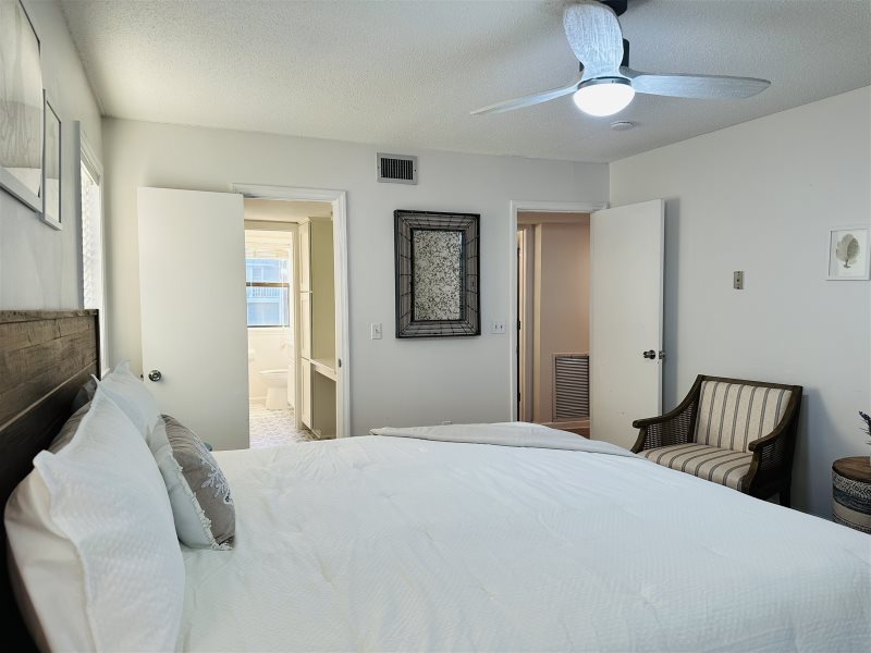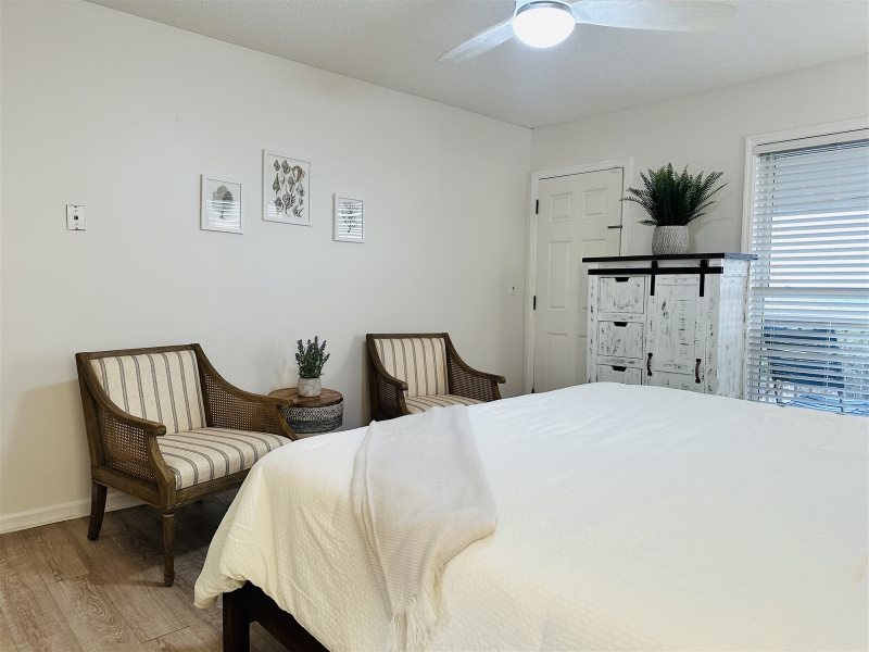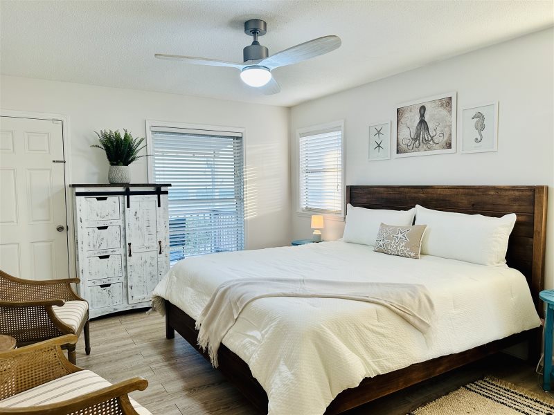 Oceanfront 2-bedroom 2 bath home is located only steps away from the soft sand and surf of Amelia Island. This spacious home will accommodate up to 4 comfortably. 854 South Fletcher is unique in that both bedrooms are oceanfront and have access to the covered porch where you can enjoy the sounds of the surf while watching the amazing sunsets and sunrises. The master bedroom features a King bed with an ensuite bath, and the guest Bedroom offers a Queen bed. Easy access across the hall is a guest bath. Enjoy an open floor plan for your living room and kitchen where all rooms have an oceanfront view. While on vacation if you must work, there is a small desk that is available to you in the living room.