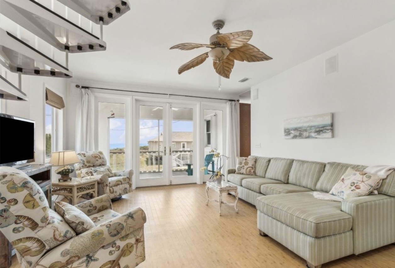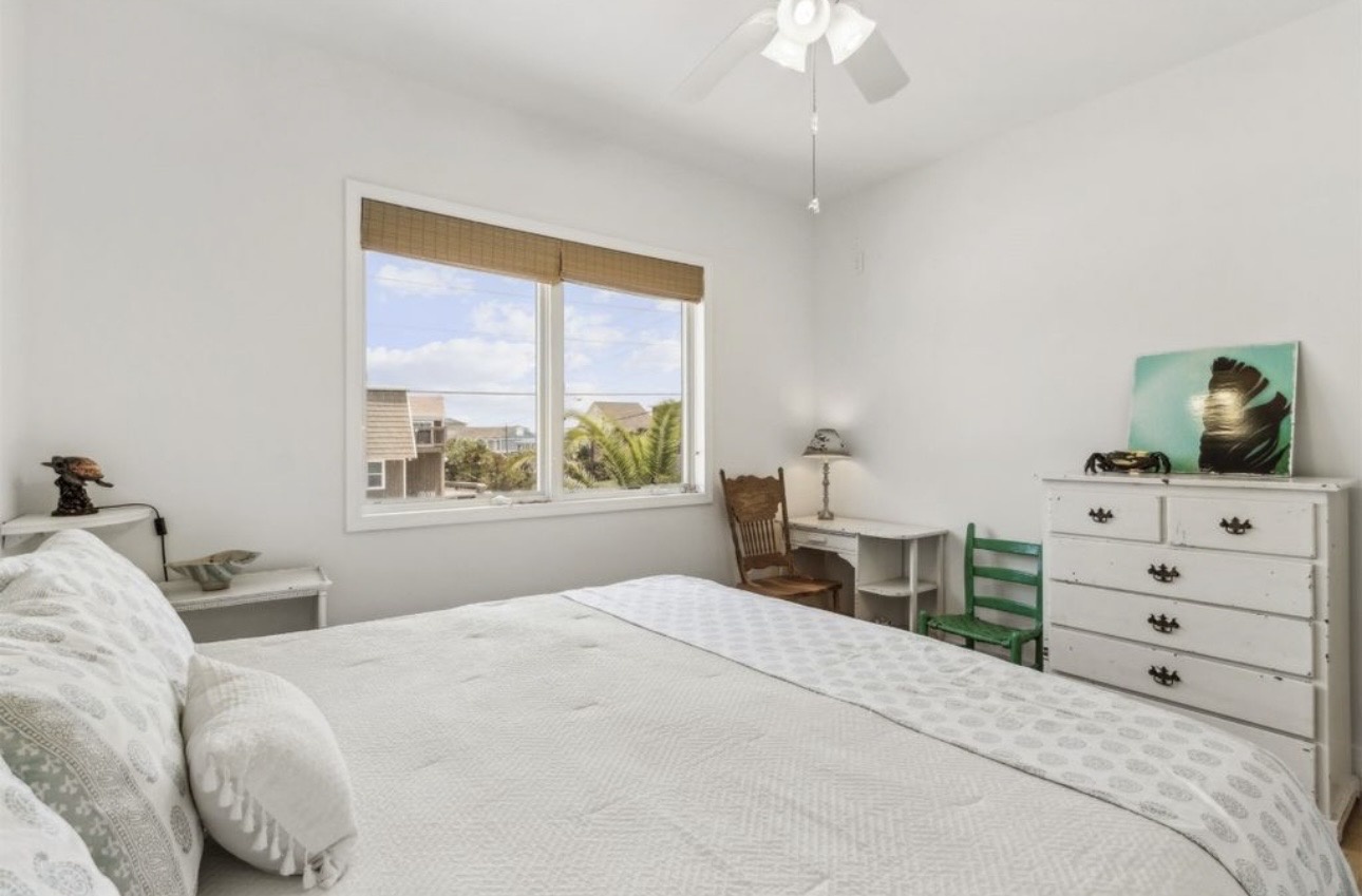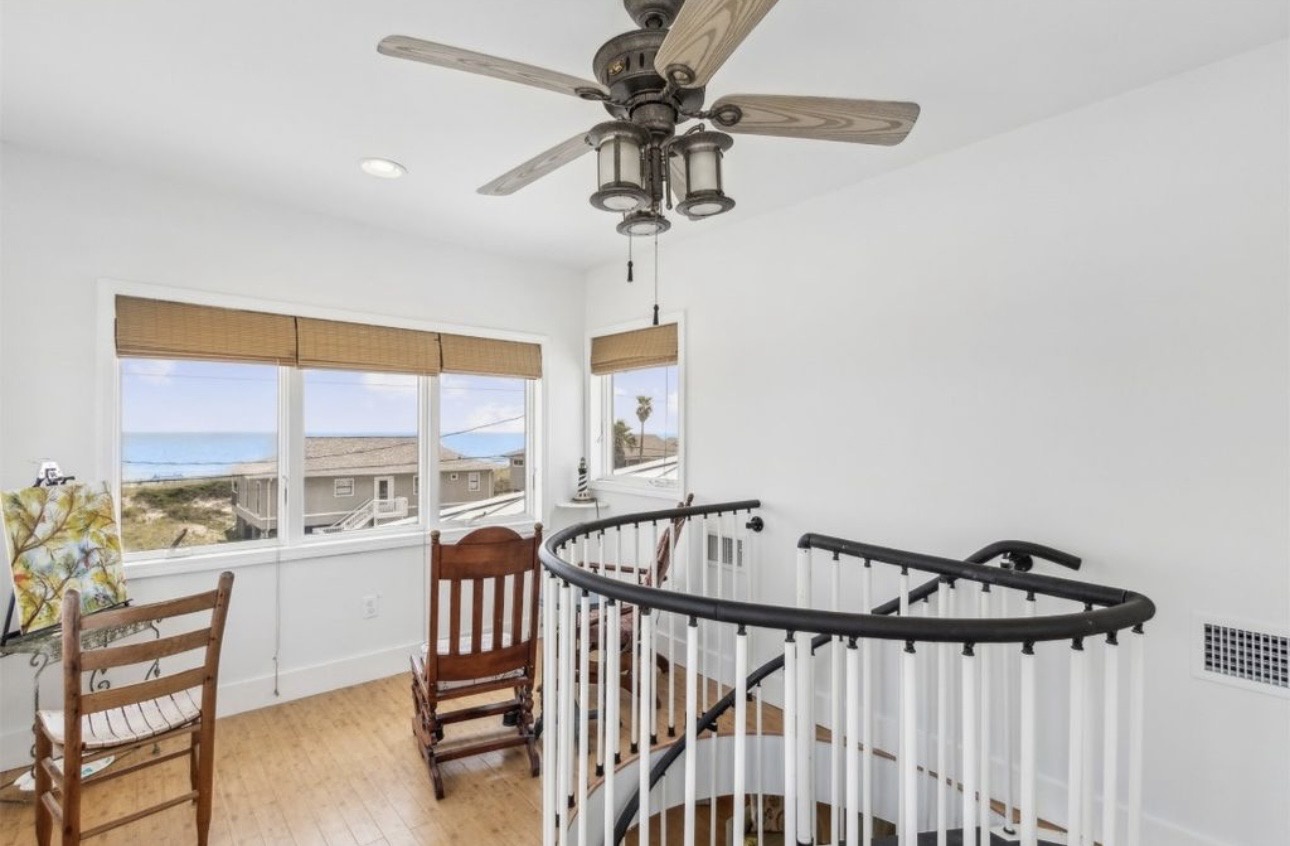 As you enter the house, on the ground level, there is a bedroom that has a set of bunk beds with a full hall bath. As you go upstairs, you will find your living room, Kitchen, 2 bedrooms, and 2 full baths for your enjoyment. The living room has cable tv for your entertainment as well as a great view of the ocean. Located off the living room you will find a screened-in patio perfect to watch the sunset and sunrises. Enjoy ocean views from the kitchen too! Master Bedroom has a King bed with a streaming TV and an ensuite bath that includes a jacuzzi tub. The Guest Bedroom also has a King bed with a full bath that can be entered through the hall. For the best views, there is an extra bonus Zen room located on a separate staircase from the living room.
