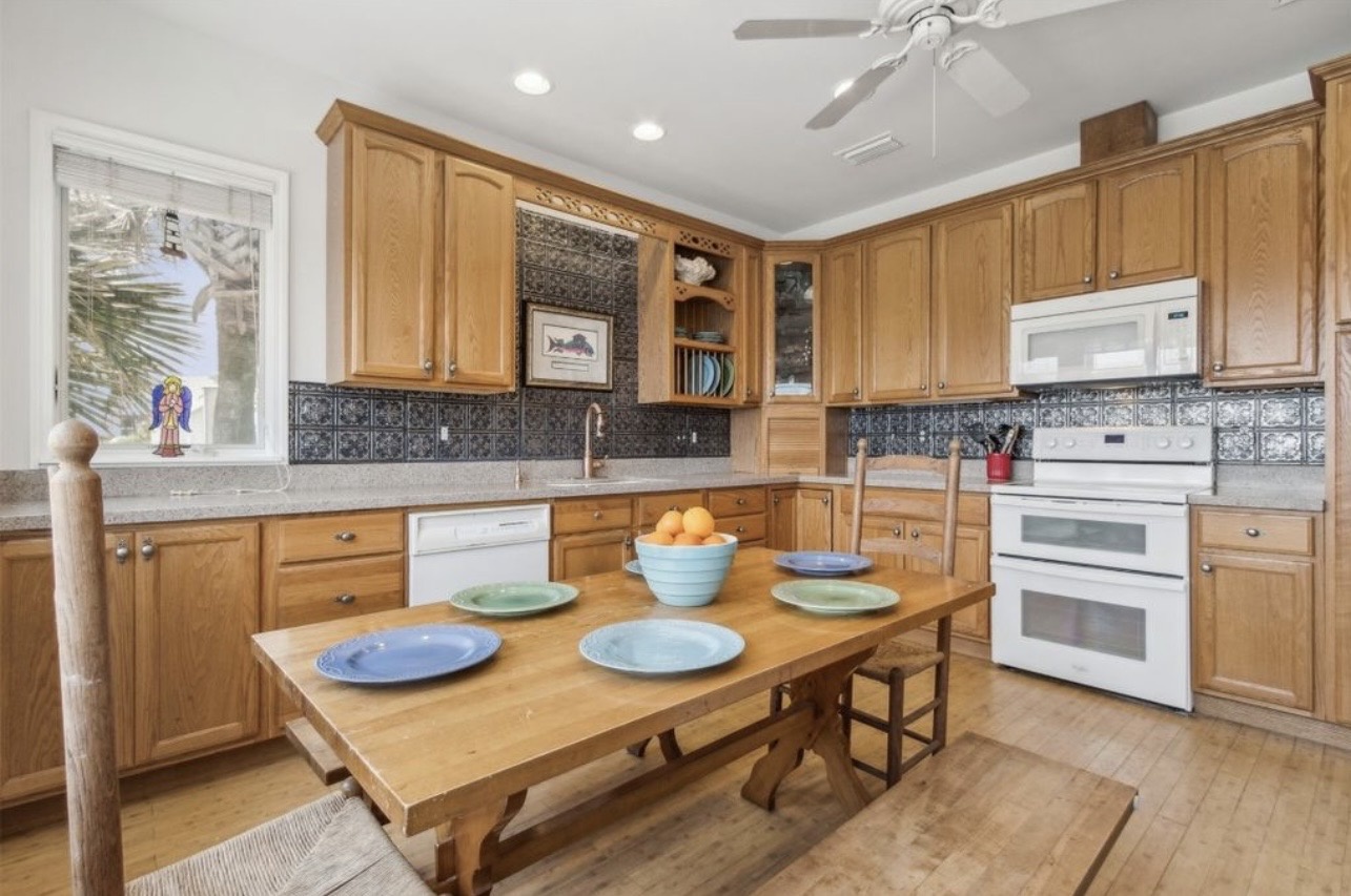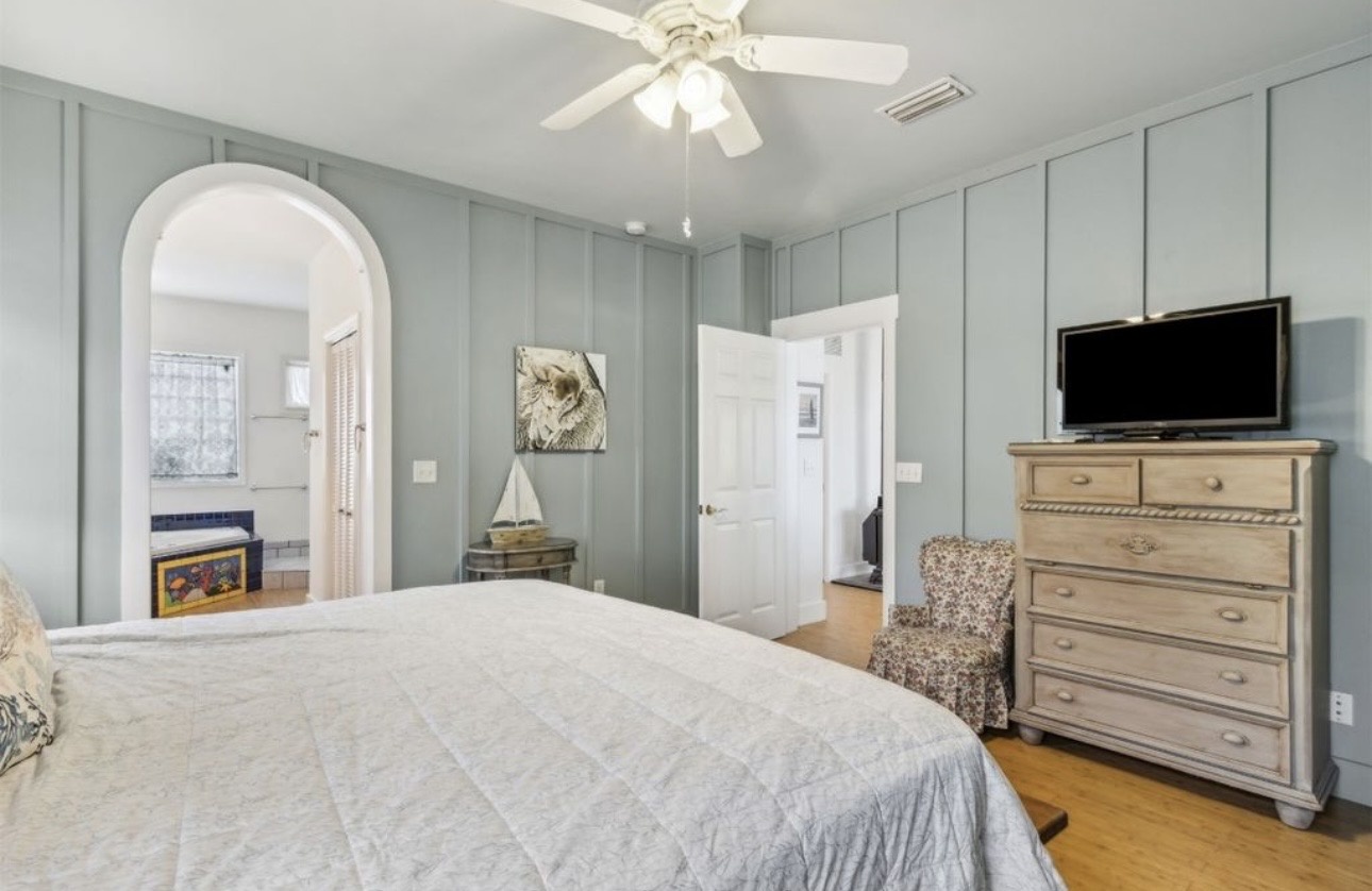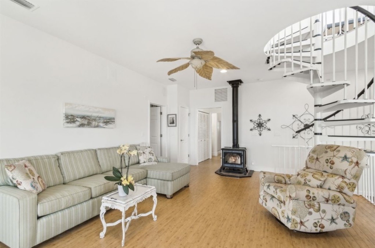 As you enter the house, on the ground level, there is a bedroom that has a set of bunk beds with a full hall bath. As you go upstairs, you will find your living room, Kitchen, 2 bedrooms, and 2 full baths for your enjoyment. The living room has cable tv for your entertainment as well as a great view of the ocean. Located off the living room you will find a screened-in patio perfect to watch the sunset and sunrises. Enjoy ocean views from the kitchen too! Master Bedroom has a King bed with a streaming TV and an ensuite bath that includes a jacuzzi tub. The Guest Bedroom also has a King bed with a full bath that can be entered through the hall. For the best views, there is an extra bonus Zen room located on a separate staircase from the living room.