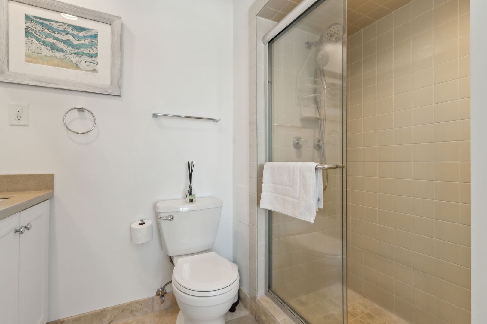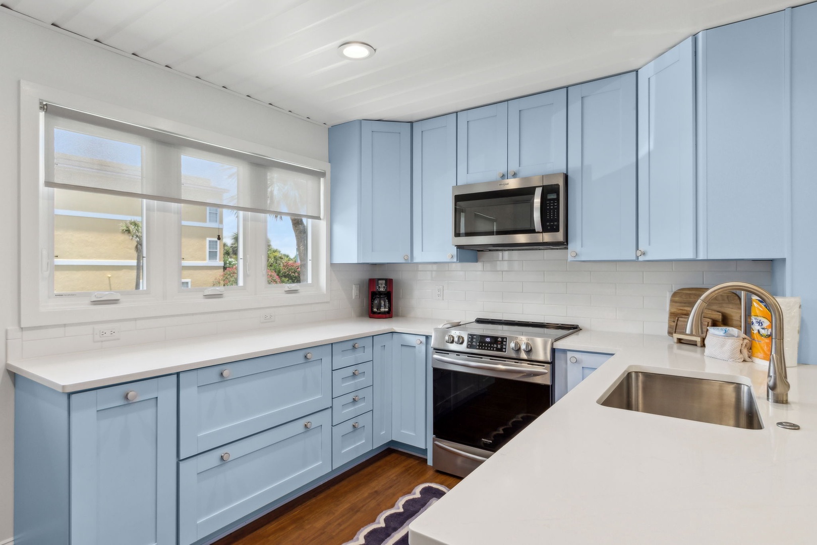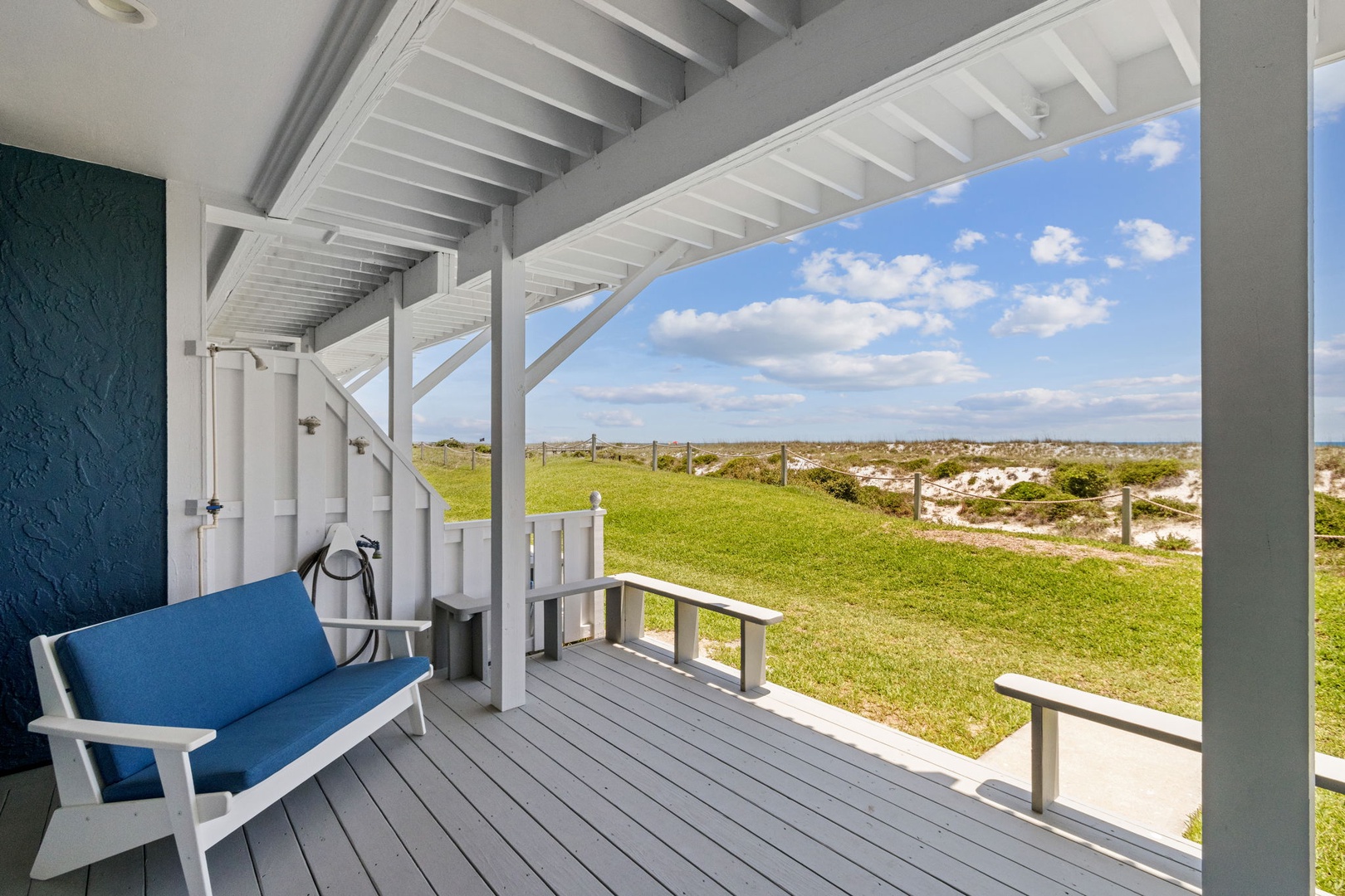 For your entertainment, the living room has a 55” flat screen Tv, Blu-ray/DVD player. Adjacent to the living room is a quaint oceanfront patio where you can listen to the waves and have a beautiful view of the ocean. Stroll just outside the patio and it's just a short walk to where you can enjoy the beach and all it has to offer. For your safety, there are usually lifeguards patrolling the shore in the summer months.