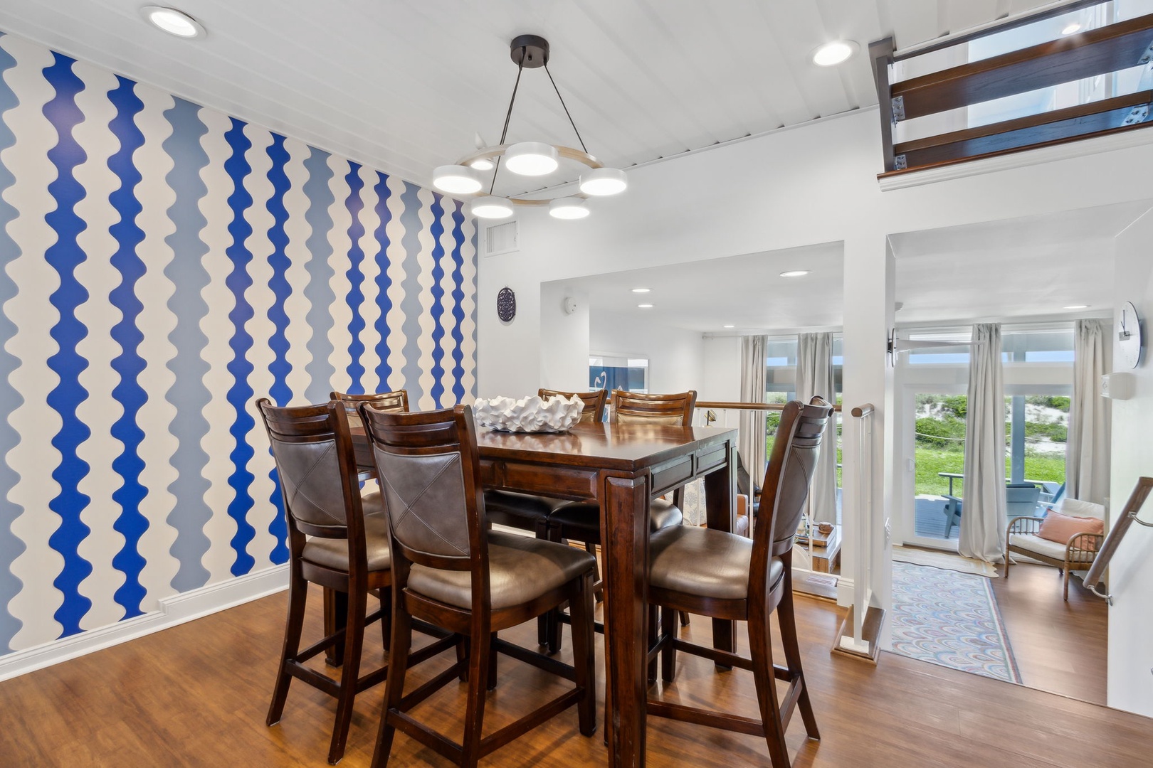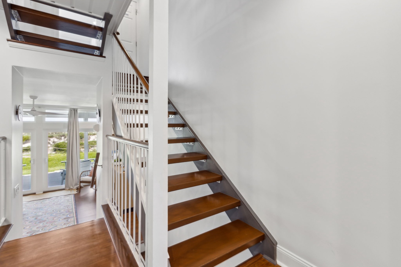 This completely renovated 3-bedroom 2 bath townhome is direct oceanfront that will accommodate up to 8 people. No more trying to find a parking space or walking across a crowded parking lot. The Sandpiper complex is so ultra-convenient you can drive up to the front door with your own carport. The stairway entry goes to the 1st level where you’ll find your gorgeously decorated living room, dining room, and kitchen.