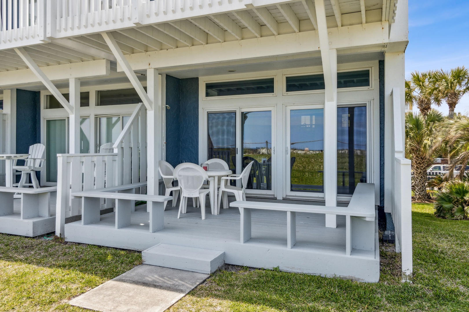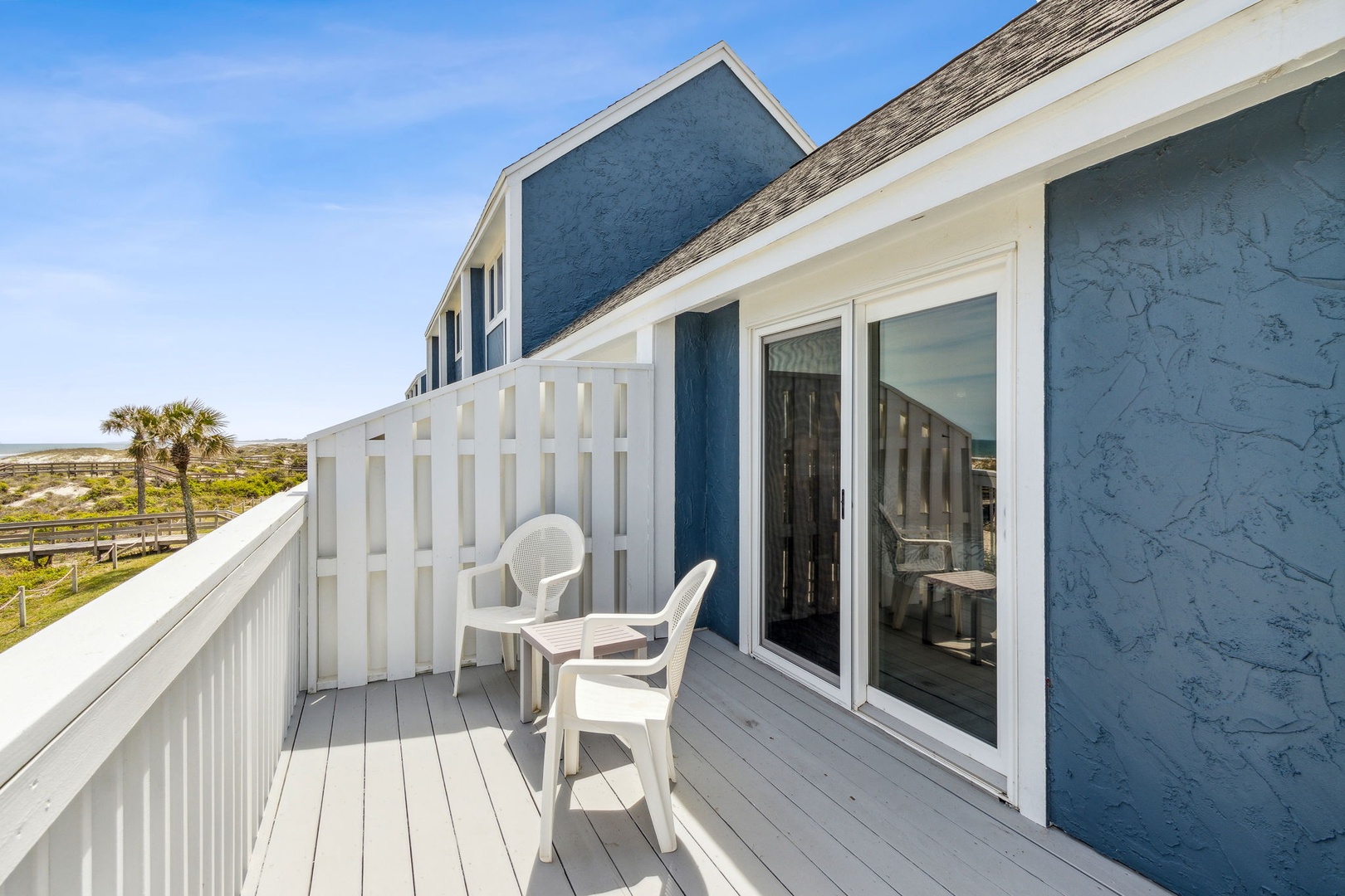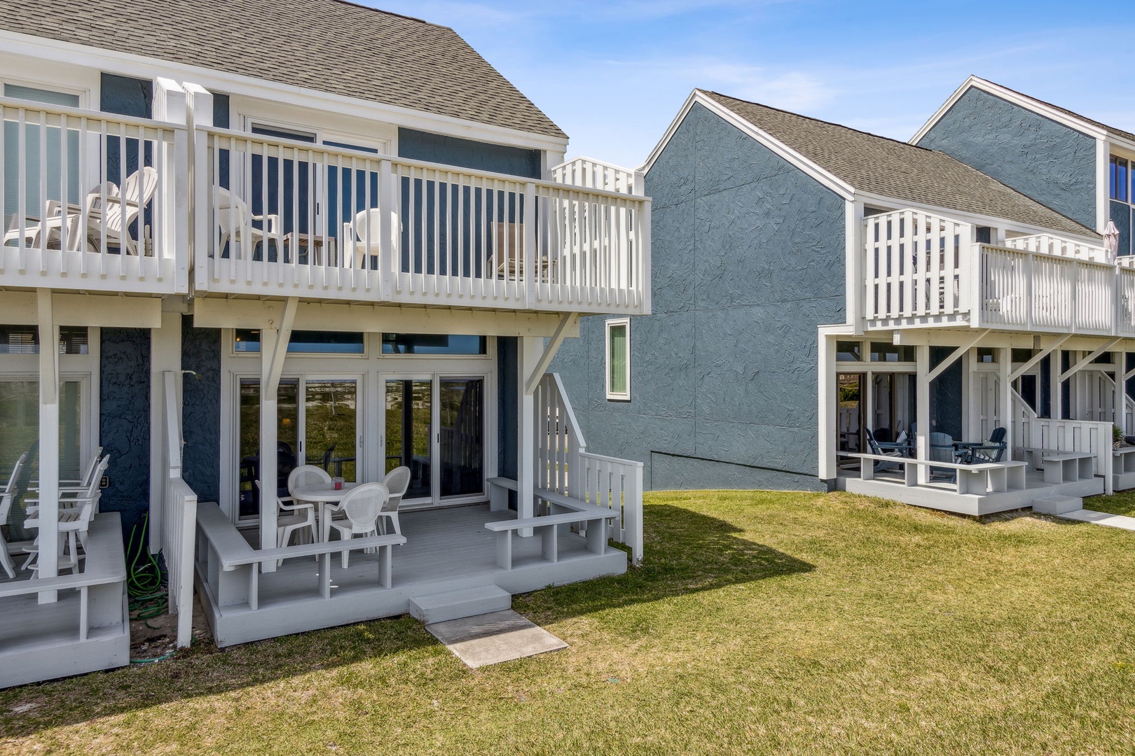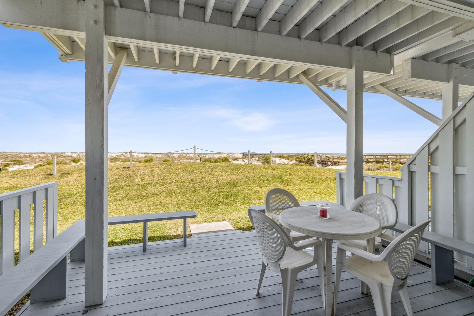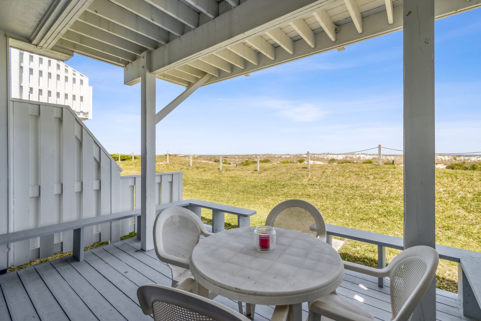 The stairway entry goes to the 1st level where you’ll find your living room, dining room, and kitchen. Adjacent to the living room is your oceanfront patio where you can listen to the waves and enjoy the sunsets. Stroll just outside the patio and it's just a short walk to where you can enjoy the beach and all it has to offer. For your safety, there are usually lifeguards patrolling the shore in the summer months.