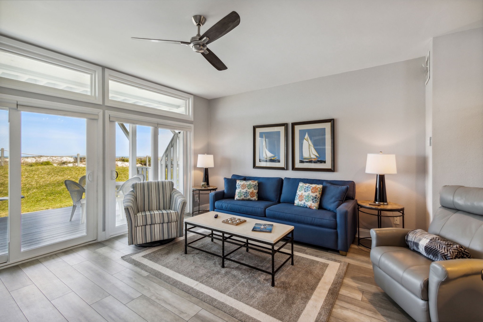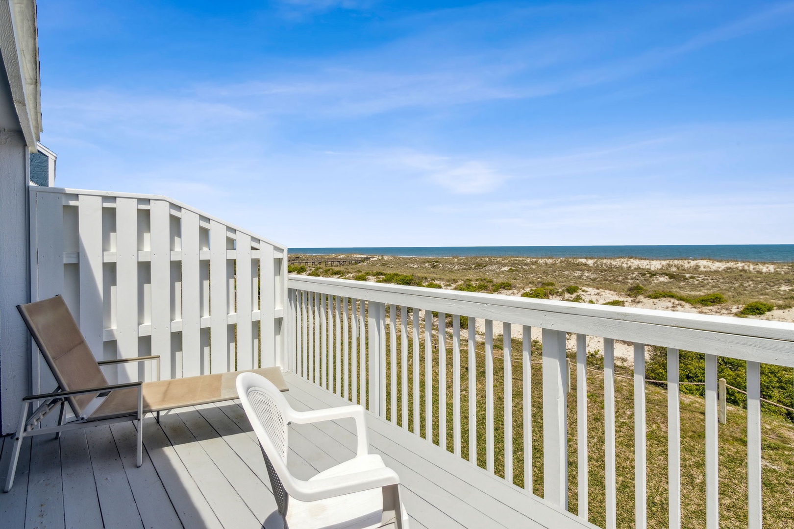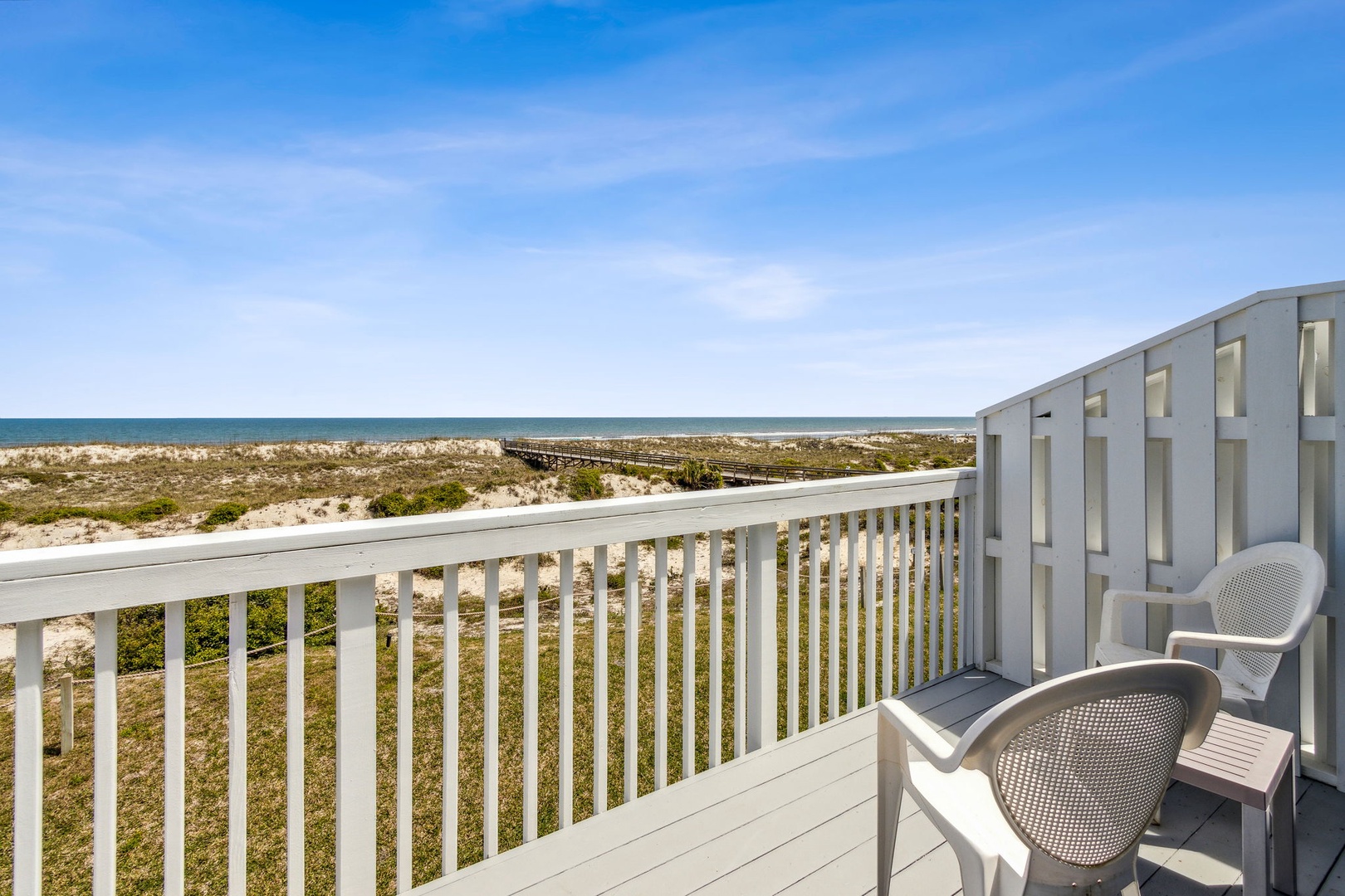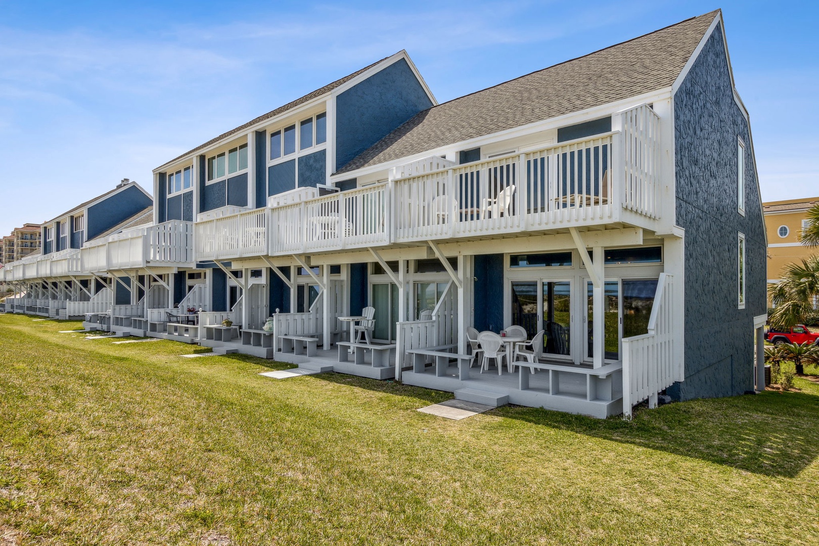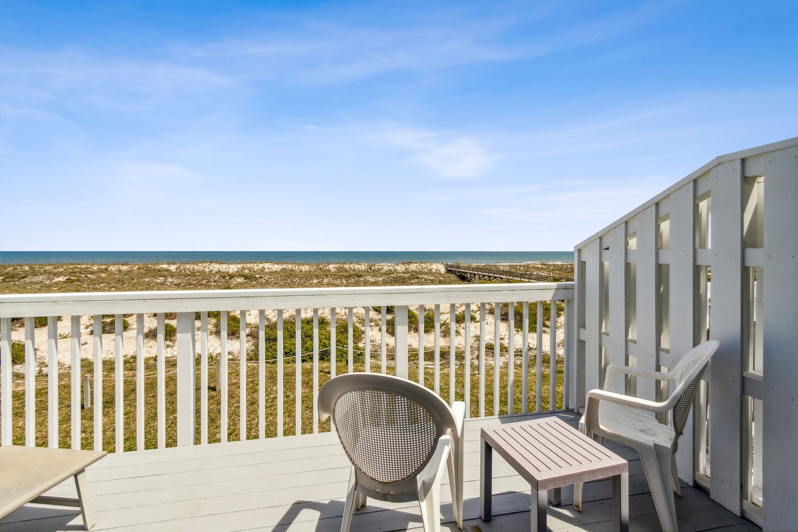 The stairway entry goes to the 1st level where you’ll find your living room, dining room, and kitchen. Adjacent to the living room is your oceanfront patio where you can listen to the waves and enjoy the sunsets. Stroll just outside the patio and it's just a short walk to where you can enjoy the beach and all it has to offer. For your safety, there are usually lifeguards patrolling the shore in the summer months.