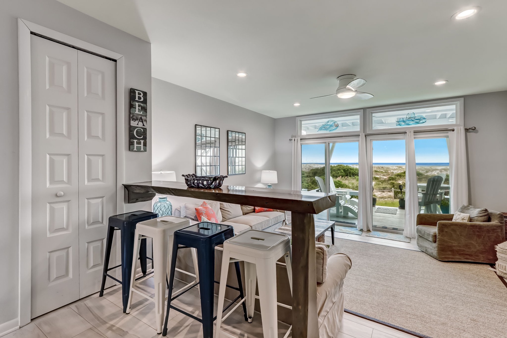 This renovated 3 bedroom 2 bath oceanfront townhouse condominium is the perfect beach vacation getaway. Nestled in on the south end of south fletcher, quiet and conveniently located to shopping and some great bike paths of the island. Spacious, the townhome features multi-level living allowing everyone to explore their own special part of the condominium.