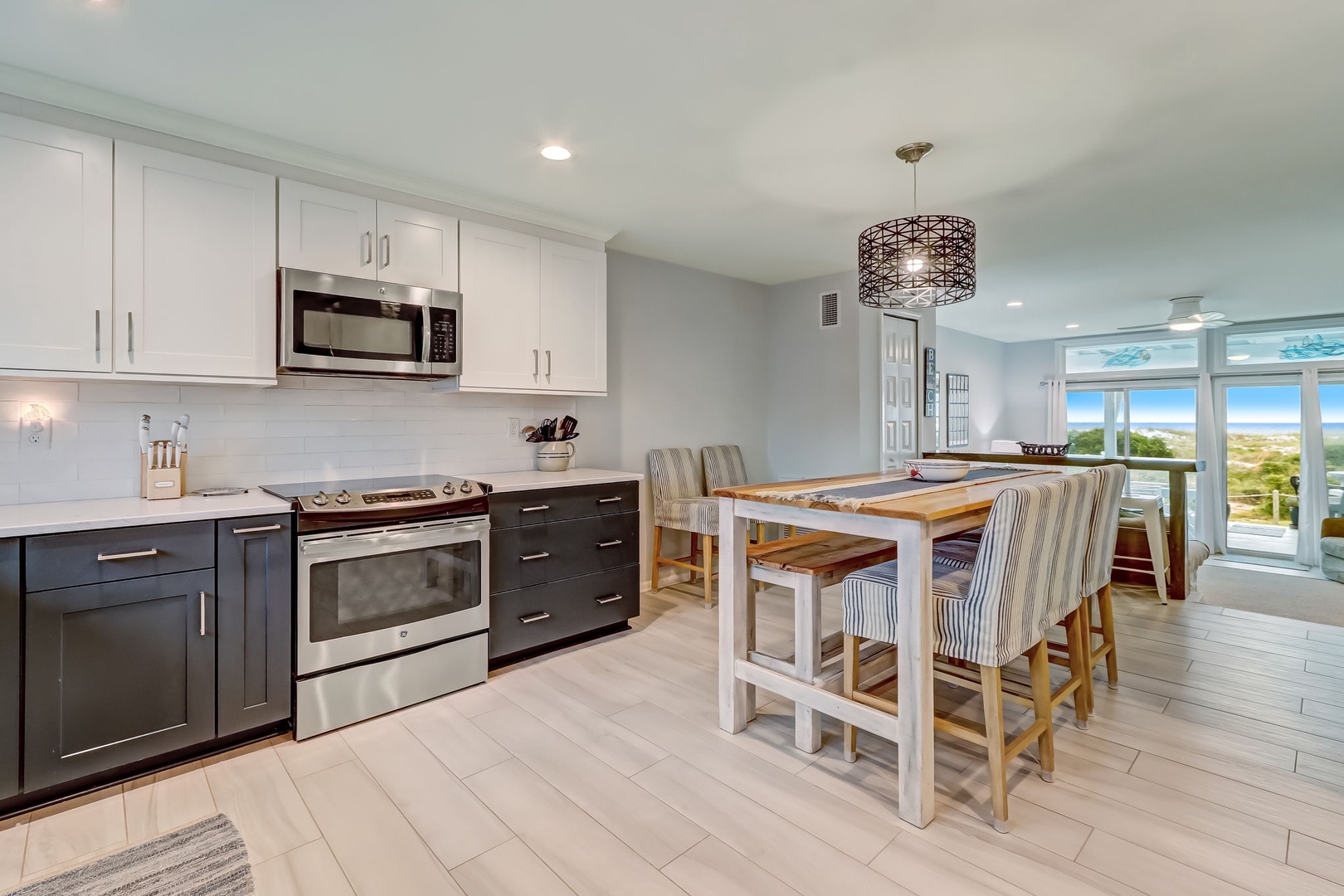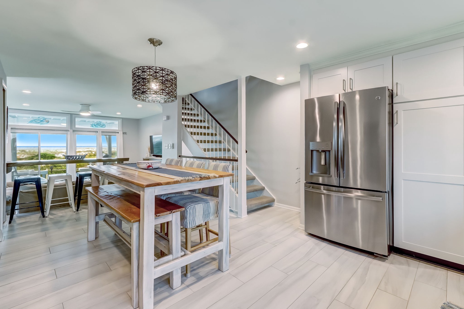 The main level has an oceanfront view allowing you to walk out on the covered porch and take in and enjoy the salty ocean air. The kitchen has been completely renovated with stainless steel appliances. While you are entertaining in the kitchen you too still have a view of the ocean.