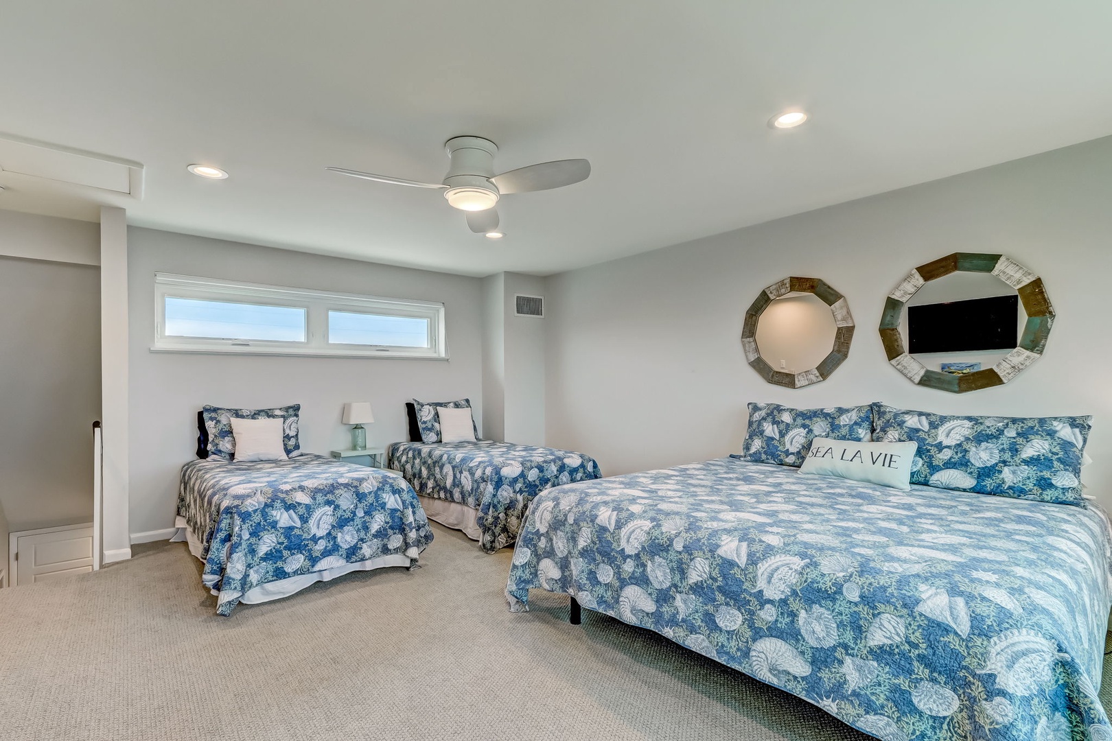 Travel to the third level you will find 3rd bedroom which has an ocean view with the bedding of a King and 2 twins.