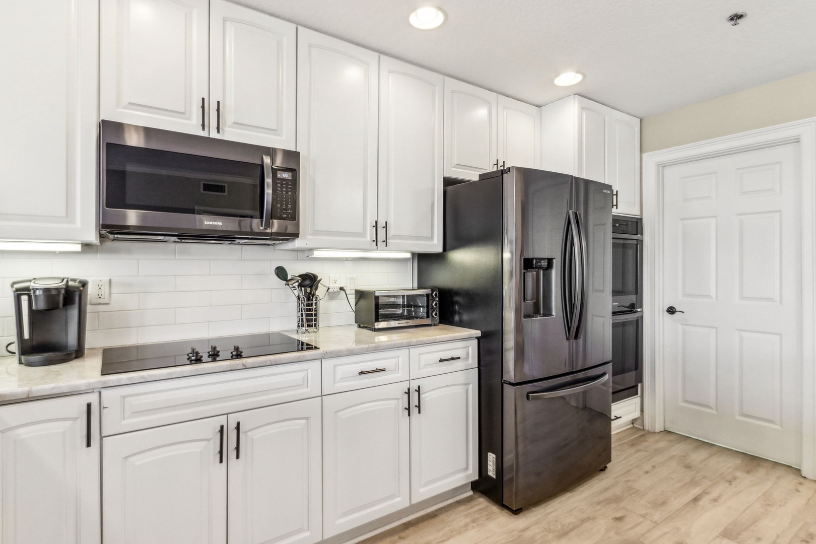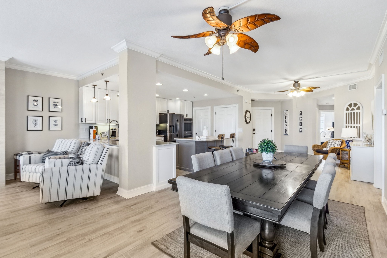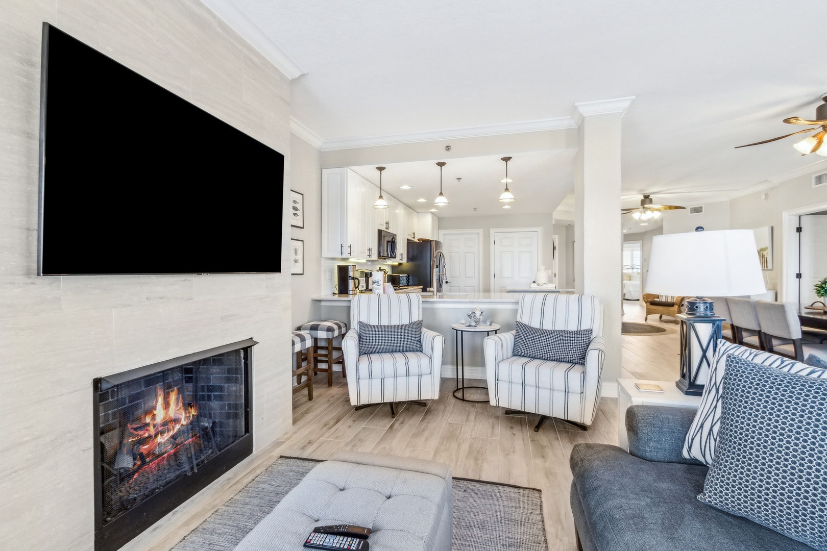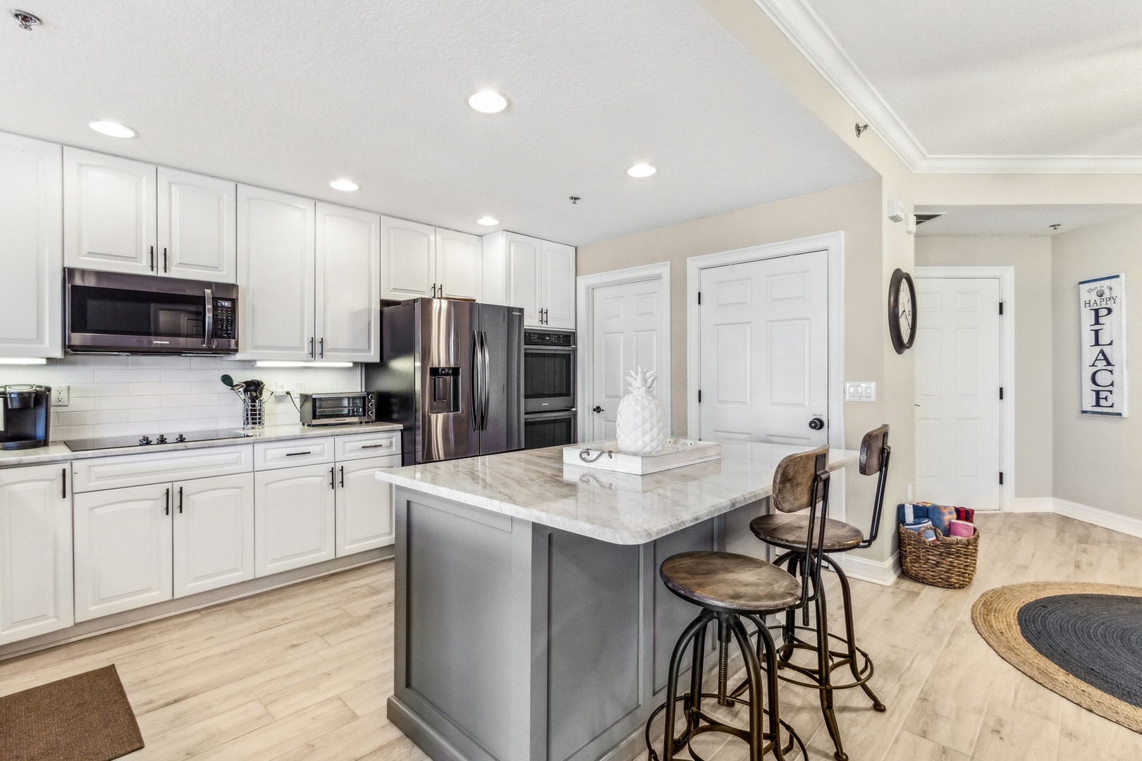 Inside, the open kitchen flows seamlessly into the living area—perfect for gathering with friends or family after a day on the sand. All appliances are updated, and there’s even a wine fridge (or keep it stocked with sodas for the kids). The master suite is your personal retreat, featuring a king bed, a spacious ensuite with both a shower and a garden tub, and direct access to the balcony—so you can wake up to the sound of waves and the sight of the sun rising over the water.