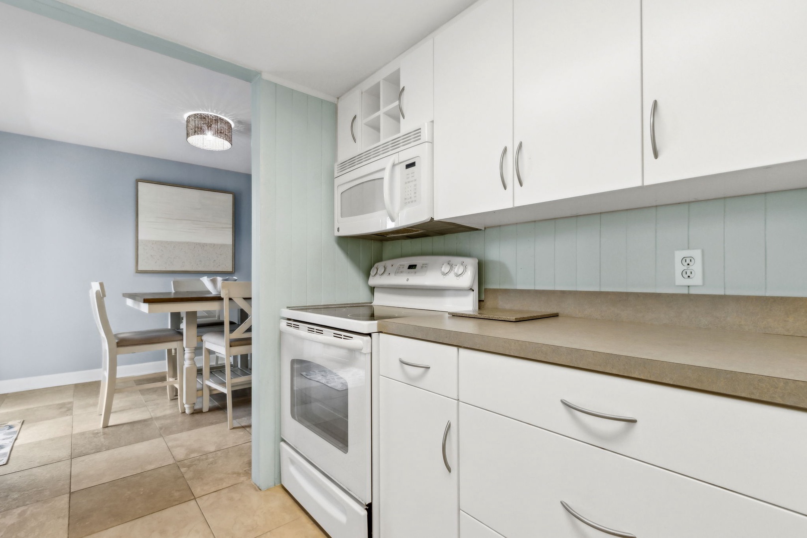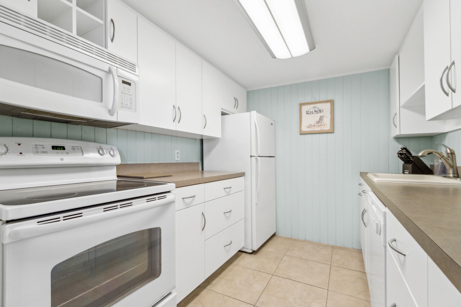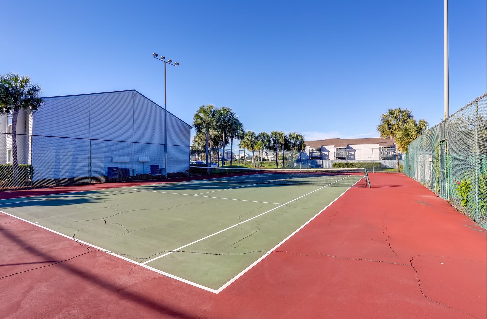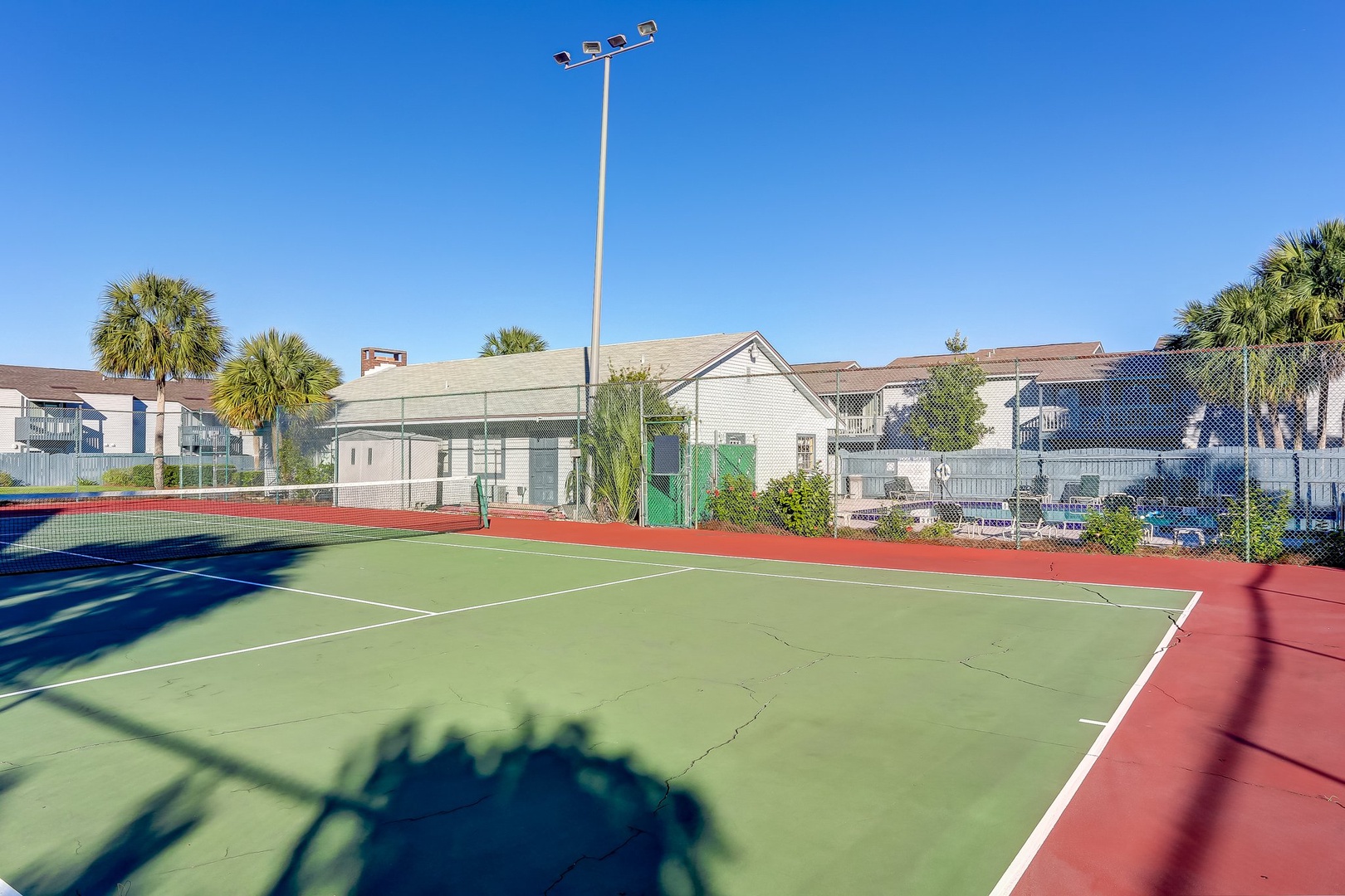 Spend your afternoons lounging by the pool or playing a few sets on the tennis courts—both are just steps from your door and open to guests. Inside, you’ll walk into a bright living room, a convenient half bath, and a galley kitchen that makes whipping up vacation snacks a breeze. Slide open the door to your private patio and eat outside when the weather’s just right.