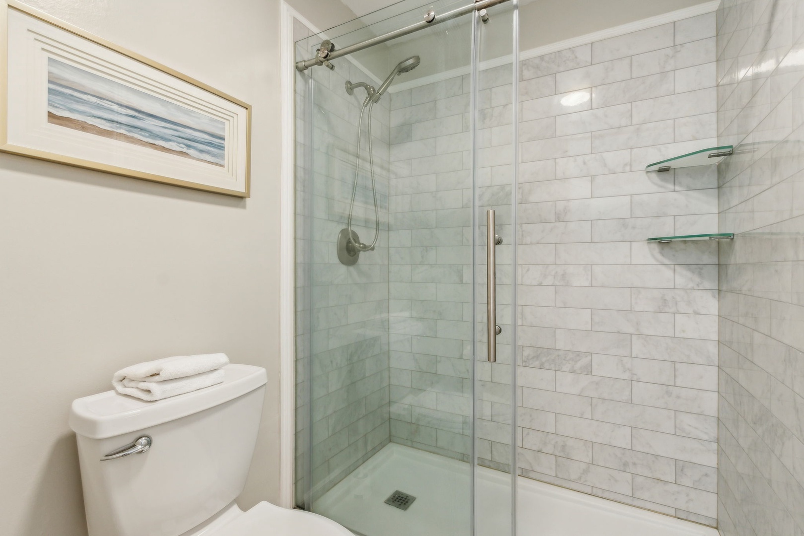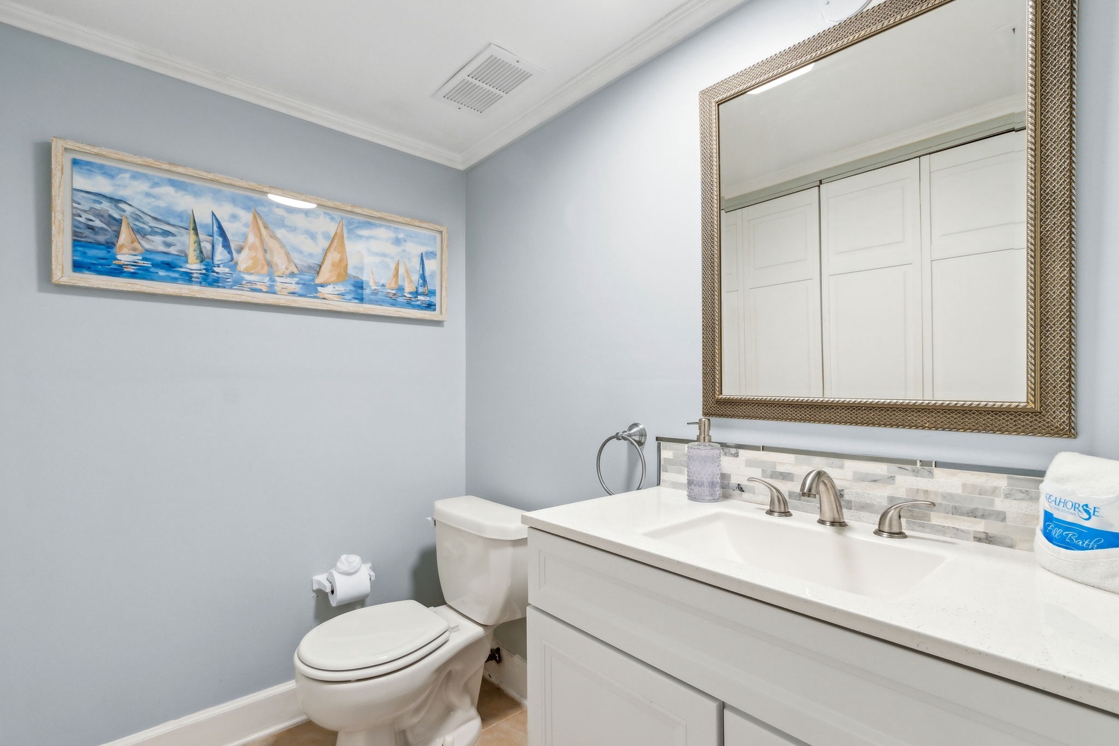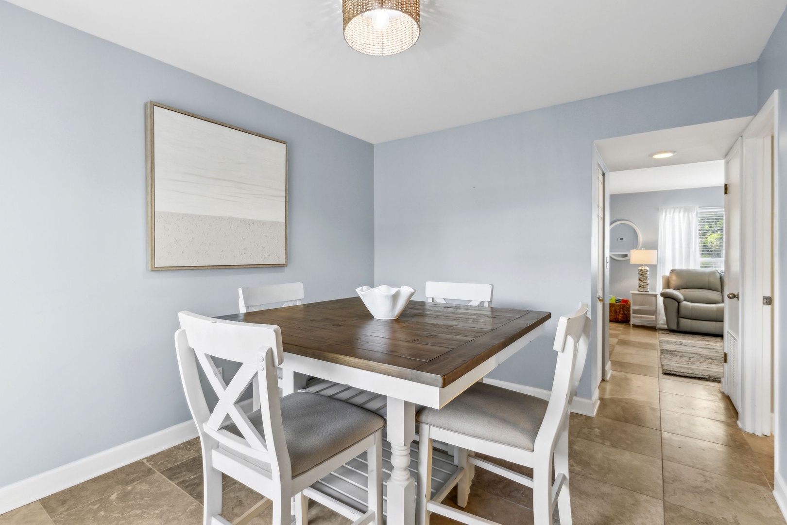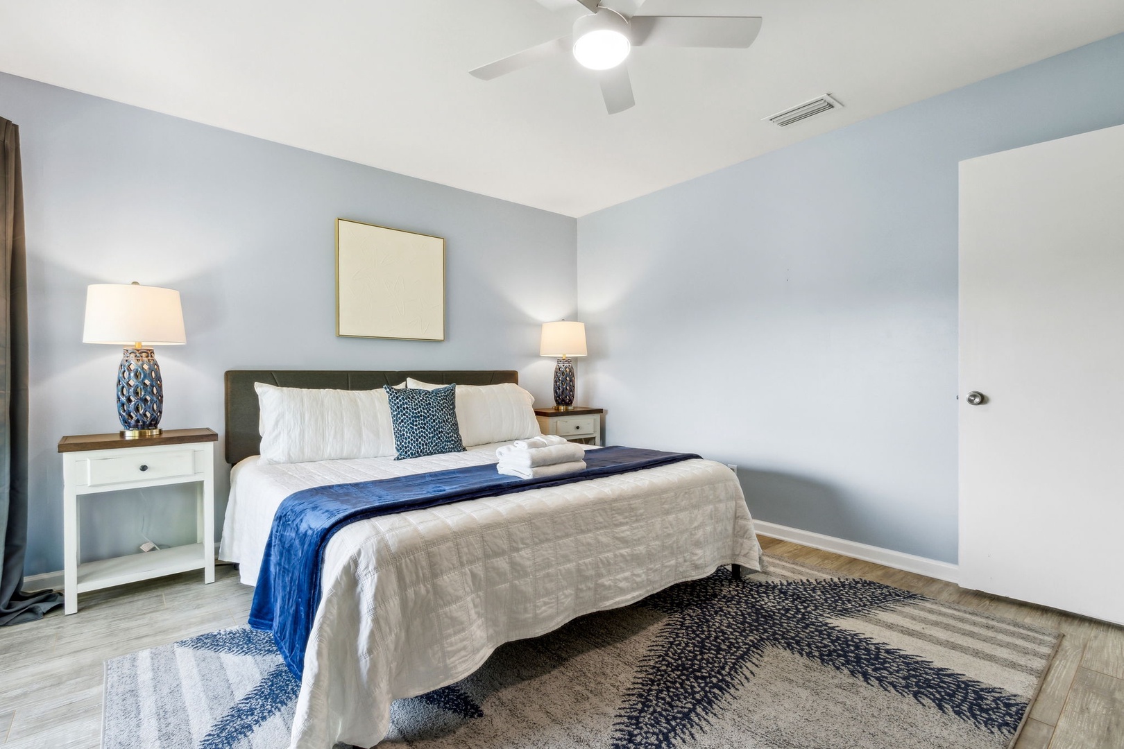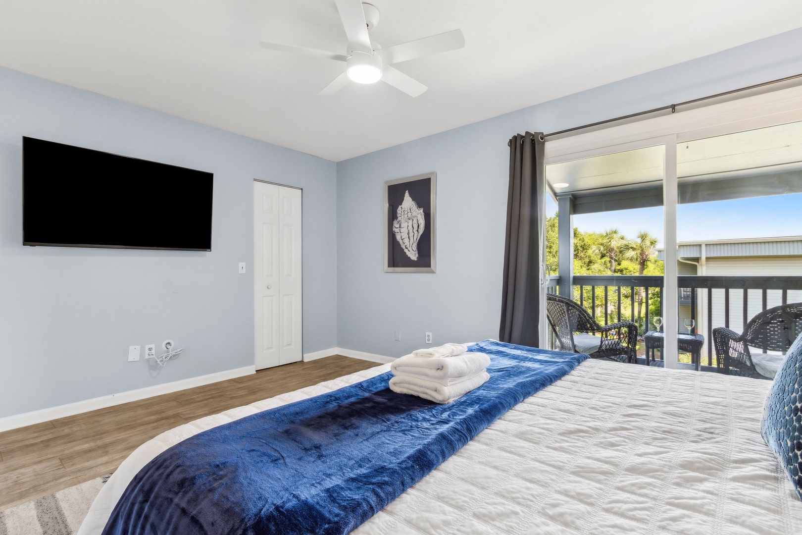 Head upstairs and you’ll find two bedrooms sharing a central bathroom. The guest room comes with a comfy queen bed, while the master features a king bed and its own private balcony—the perfect spot to catch the sunrise with your morning coffee or unwind at sunset with a glass of wine.