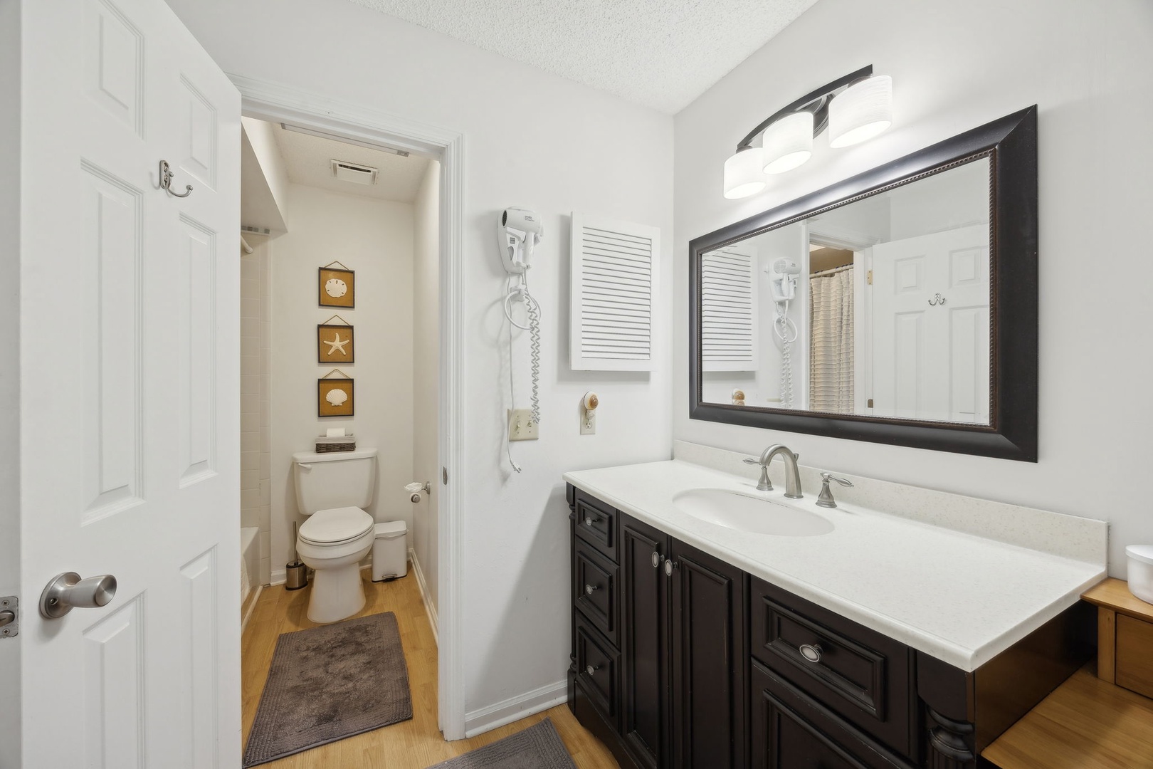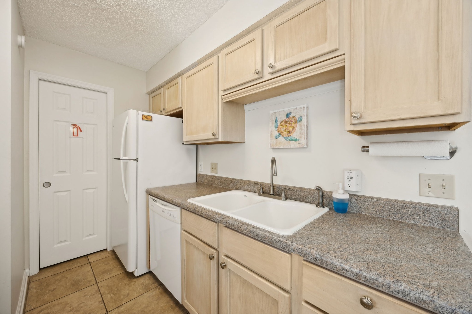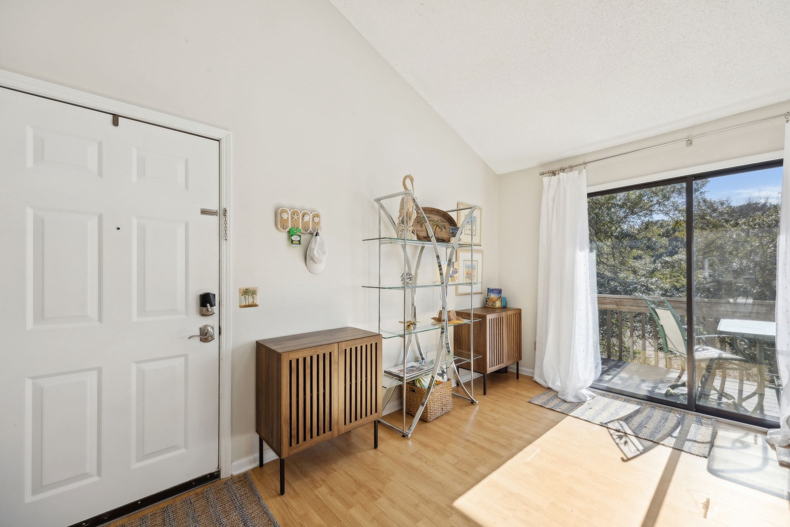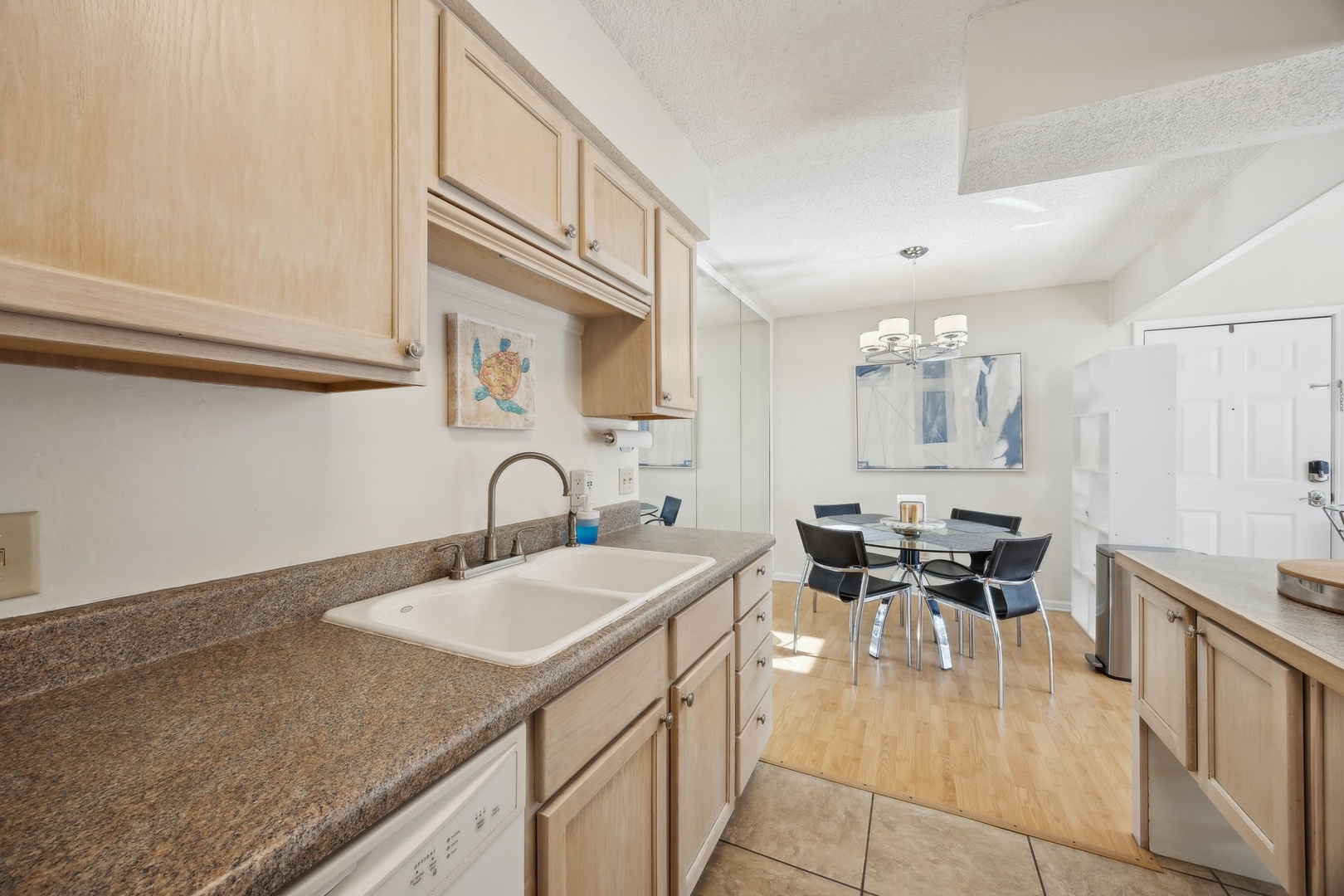 The kitchen is fully stocked with everything you might need, whether you’re whipping up breakfast or putting together a family dinner with fresh local seafood. There’s a dining area for meals, board games, or just settling in with a book and a cup of coffee. Step outside onto your private patio to soak up the morning sun or enjoy a cool evening breeze.