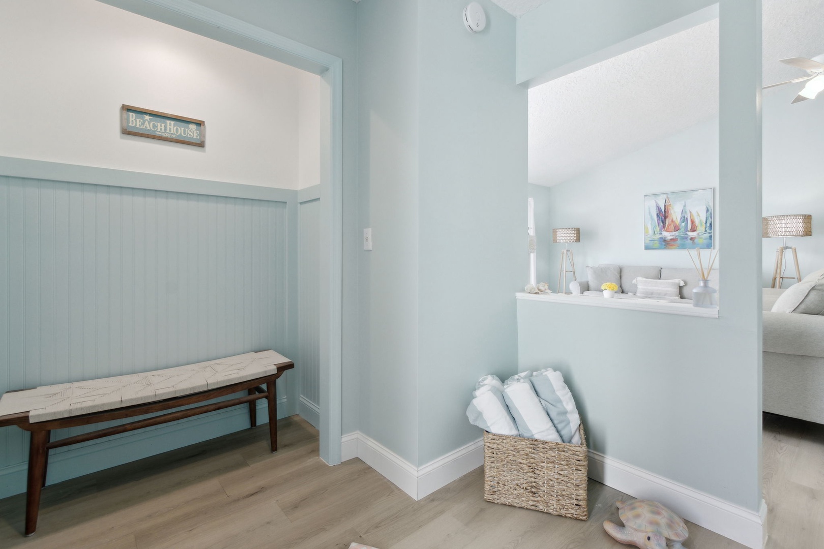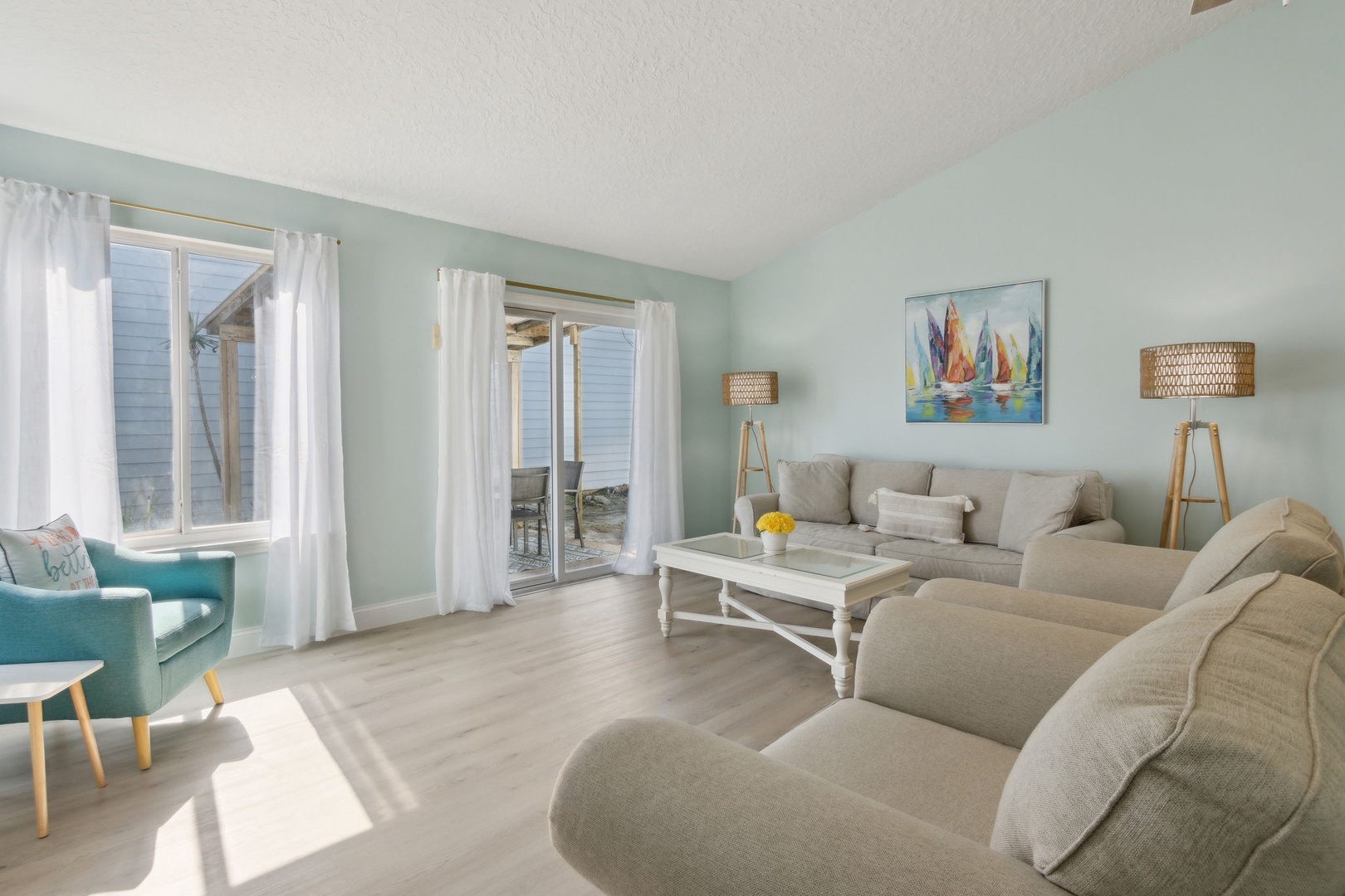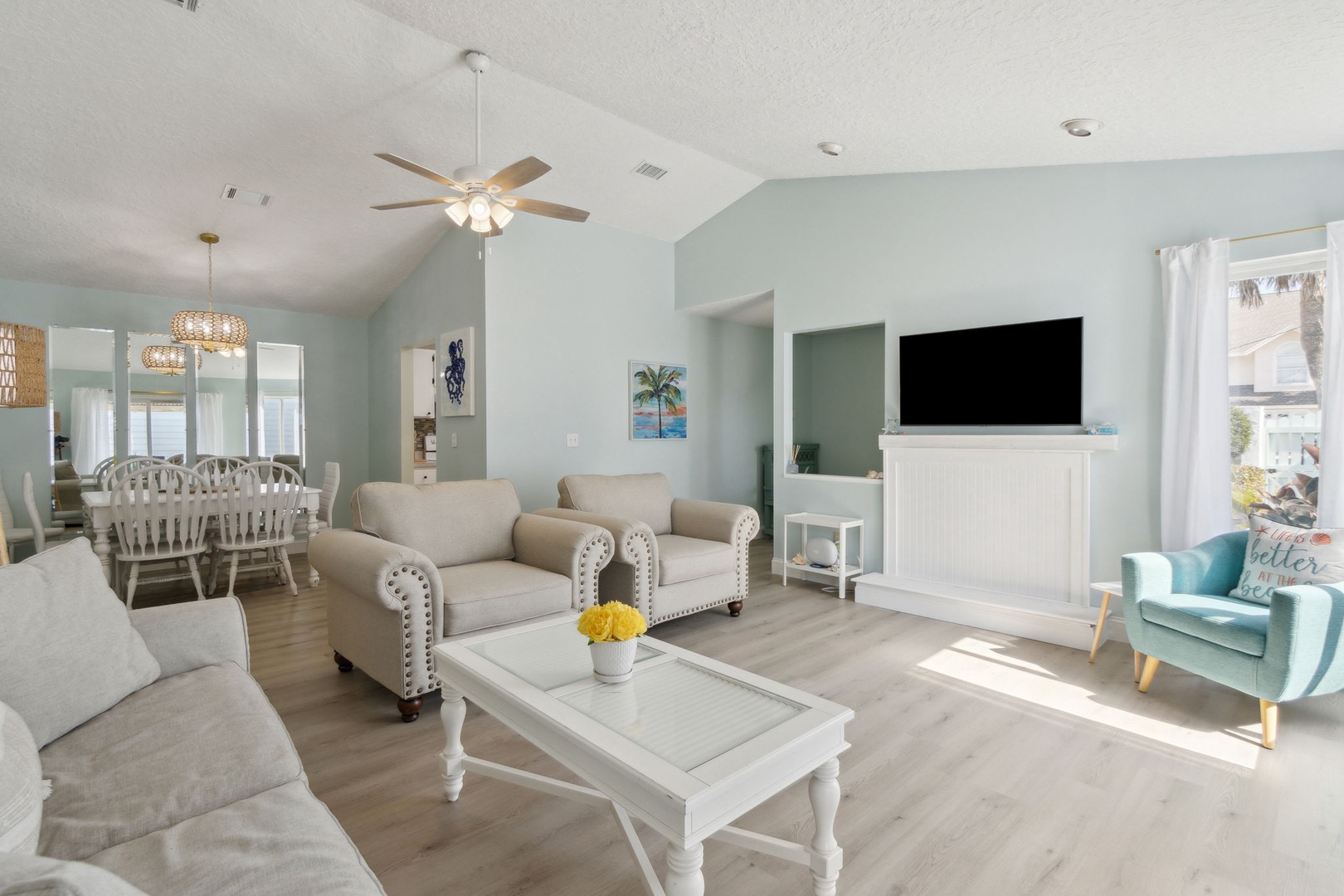 Step inside to discover an airy, open-concept living and dining area where families can gather, share meals, and create lasting memories together. The space flows naturally, making it ideal for both entertainment and relaxation after a day at the beach.