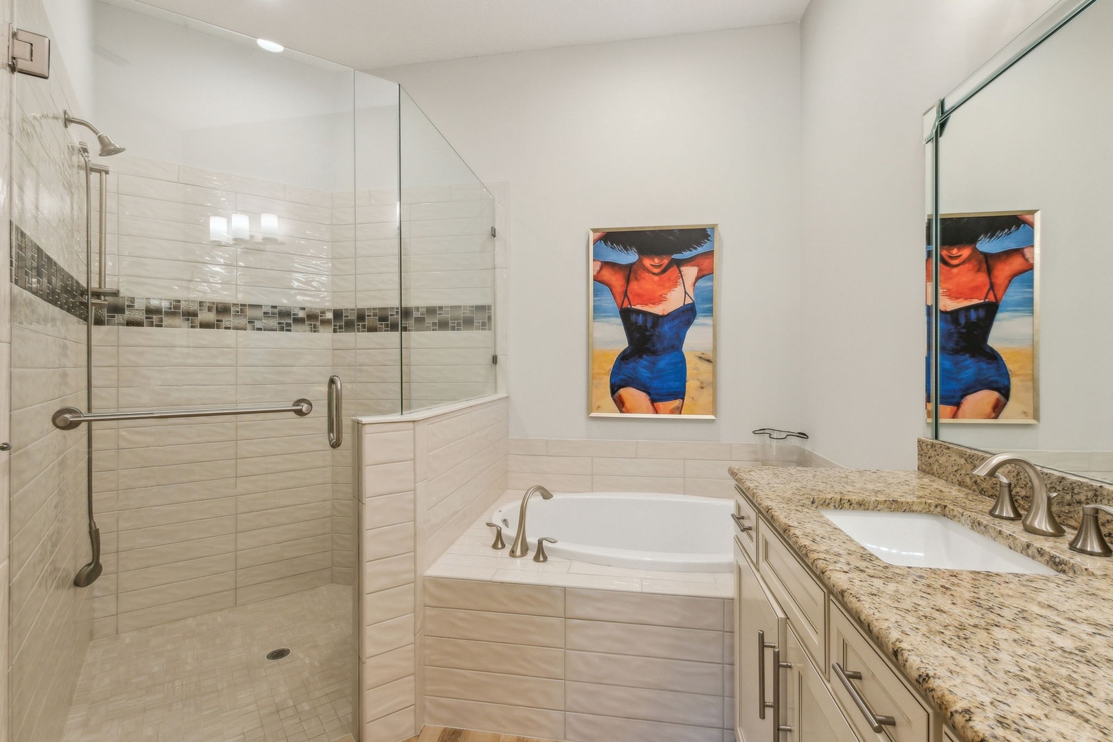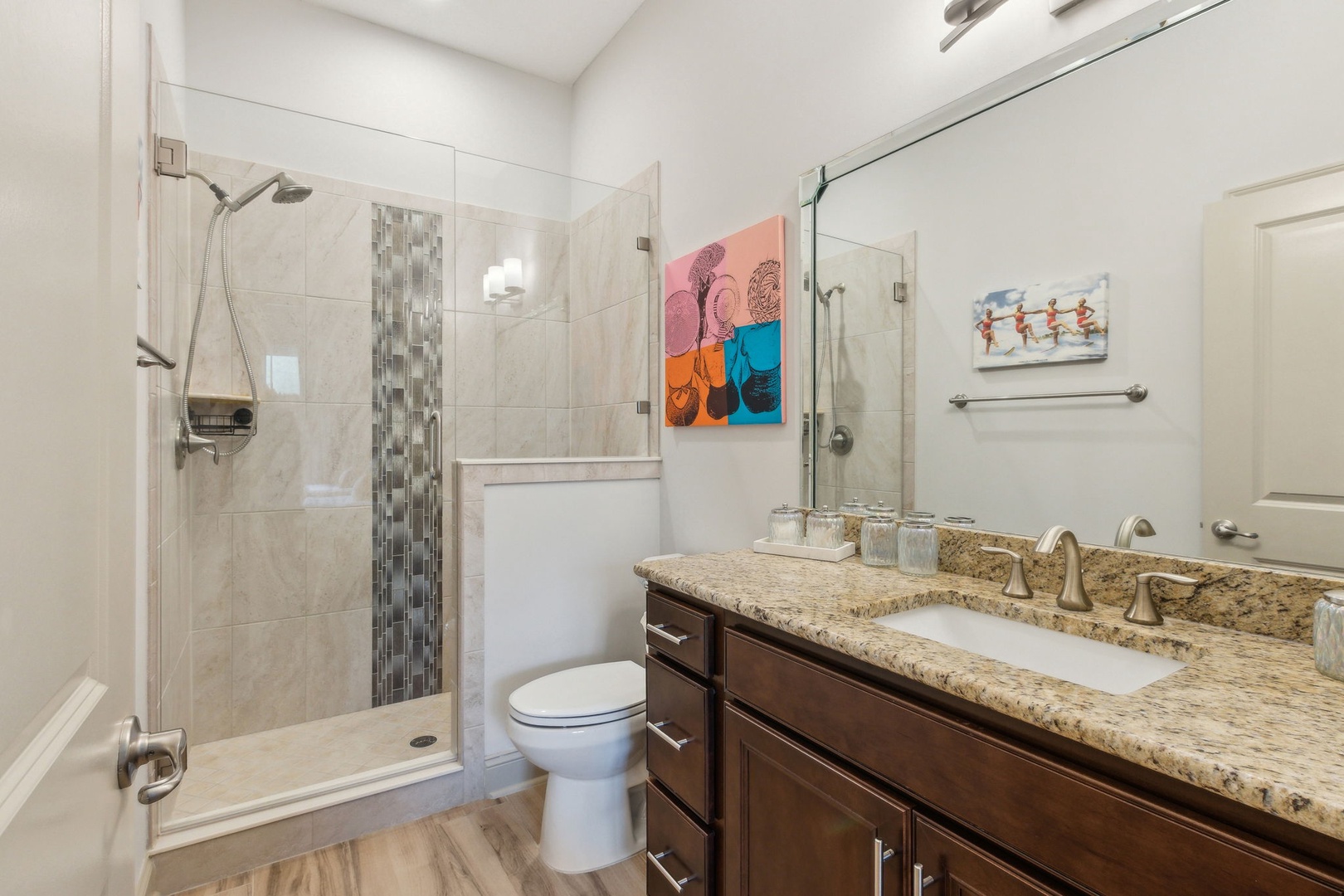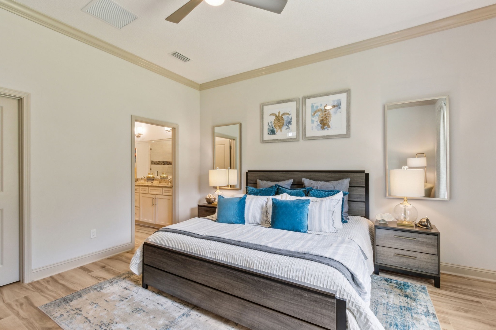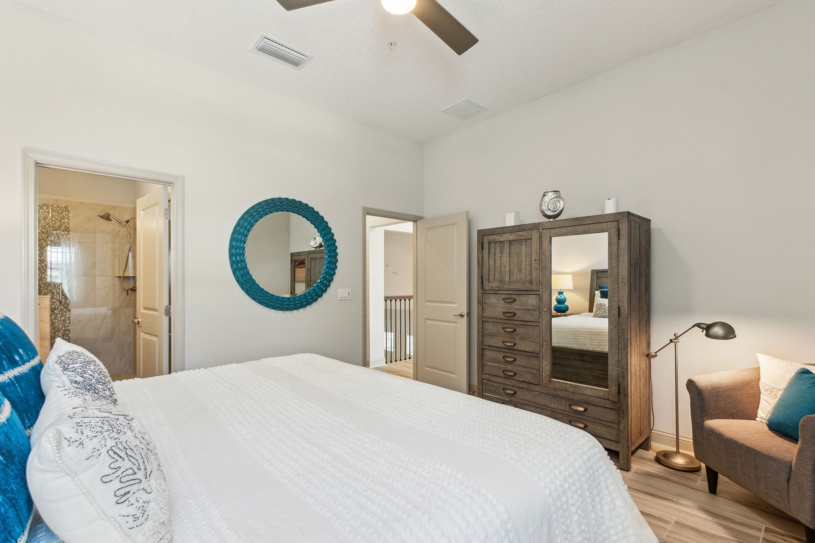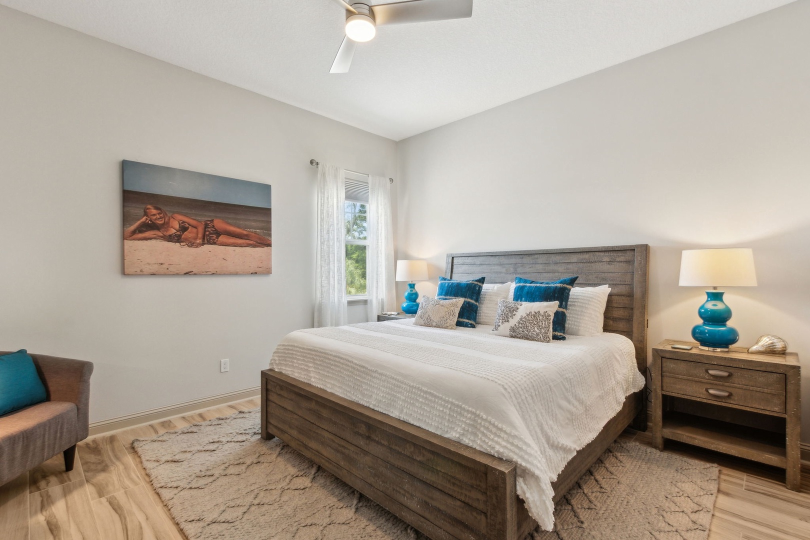 Start your mornings or wind down after a day in the sun on the screened-in patio porch—it’s the ideal spot for coffee, cocktails, or just soaking up the coastal breeze. The downstairs master suite has a plush king bed and a private bath, making it easy to relax and recharge.