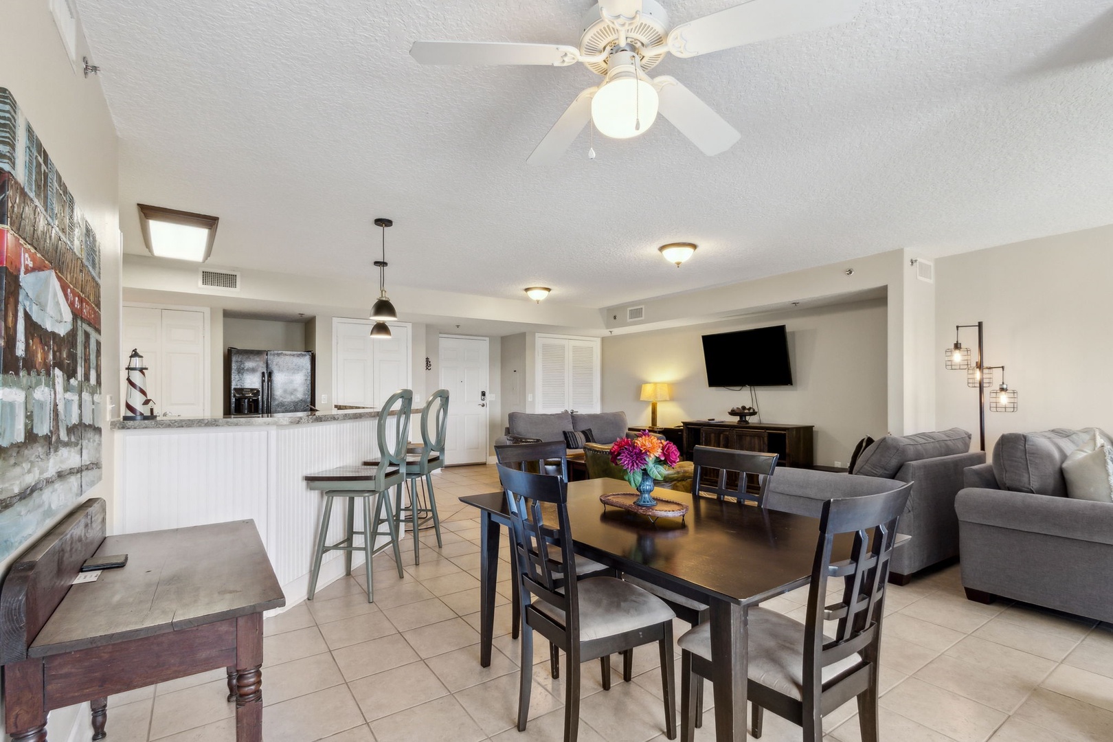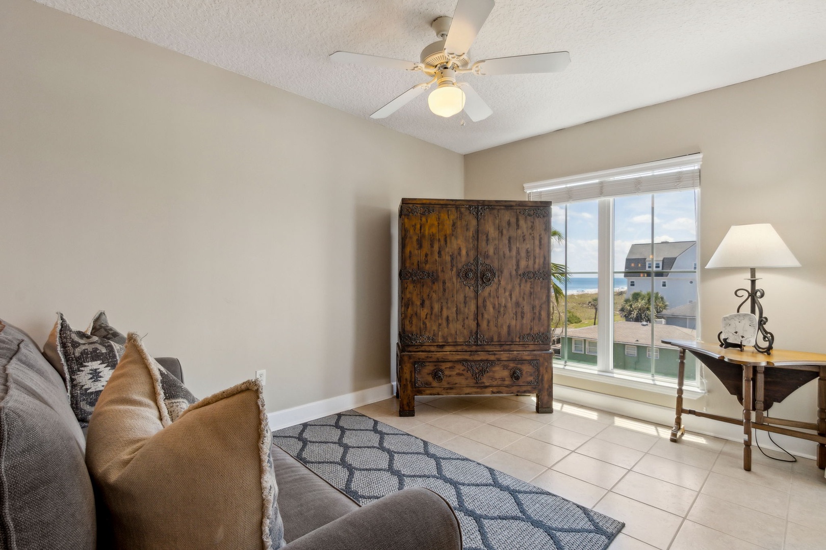 Enjoy a relaxing family escape in this inviting 1-bedroom, 2-bath condo, tucked away on the third floor with a private balcony perfect for morning coffee or evening breezes. The primary bedroom features a comfortable queen bed and an ensuite bath, while the living room’s sofa bed and an extra full bathroom off the kitchen make it easy to accommodate everyone. We've stocked the condo with all the beach gear you’ll need—just bring your swimsuits and sunscreen. Located right by the main beach, you’ll have quick access to Fort Clinch and a short drive to downtown’s shops and restaurants.