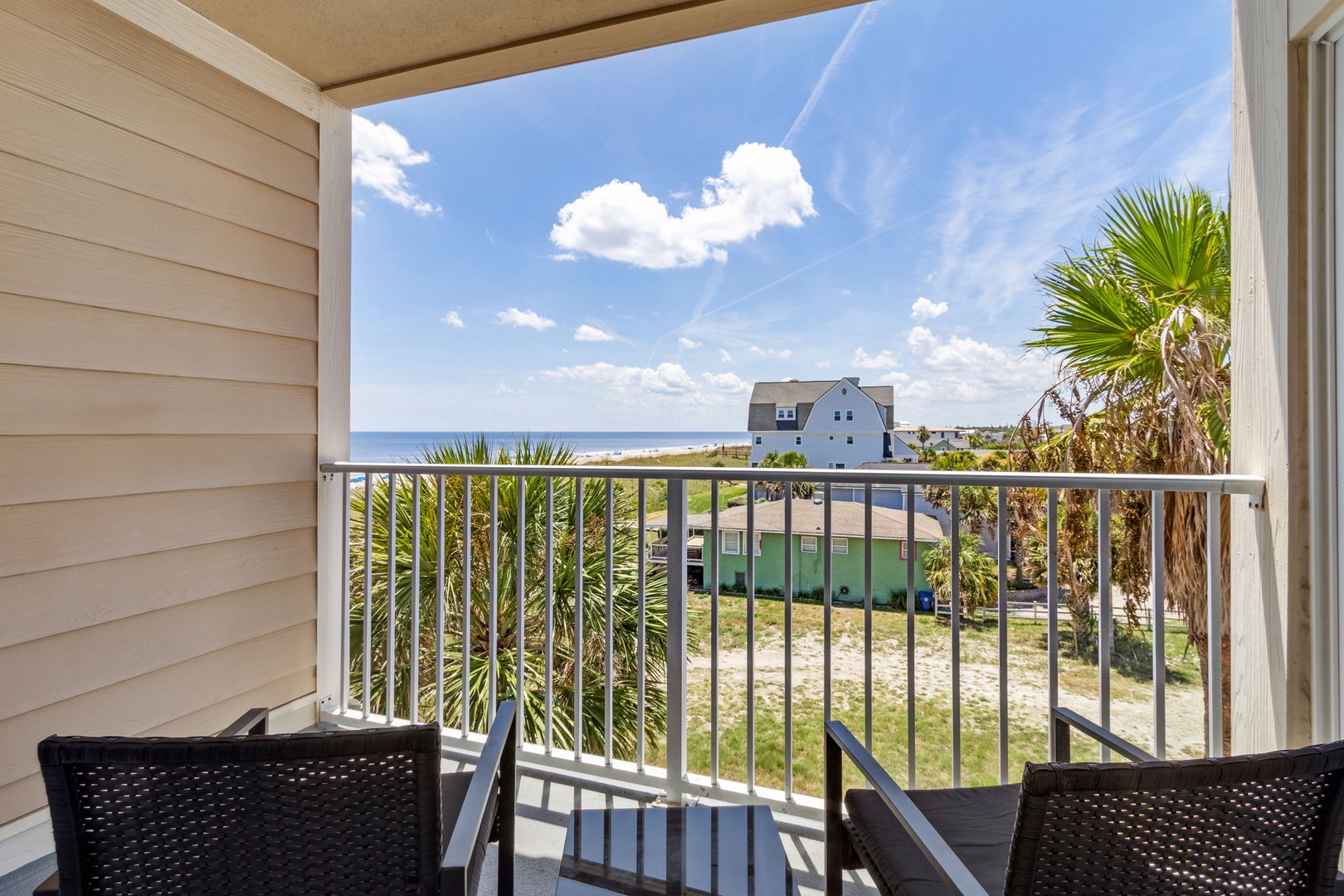 Escape to the coast with this inviting one-bedroom, one-bath condo—ideal for a relaxing getaway for two. Perched on the third floor, you'll wake up to sweeping ocean views right from your window, and enjoy a breathtaking view off the balcony. The primary bedroom offers a comfortable queen bed, and the fully equipped kitchen makes dining in a breeze. For days at the beach, you’ll have boogie boards, chairs, and an umbrella ready to go. Everything you need for the perfect beach vacation is waiting here.